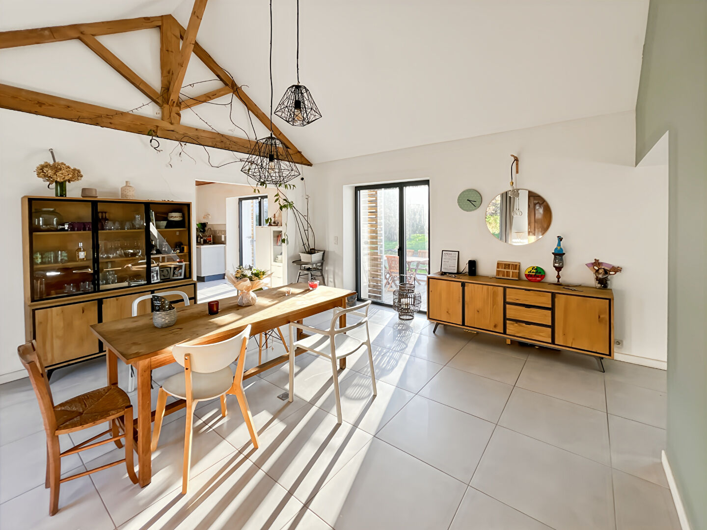 Située en campagne, à seulement 2,2 kilomètres des écoles, cette longère rénovée et agrandie allie charme de l'ancien et confort moderne.