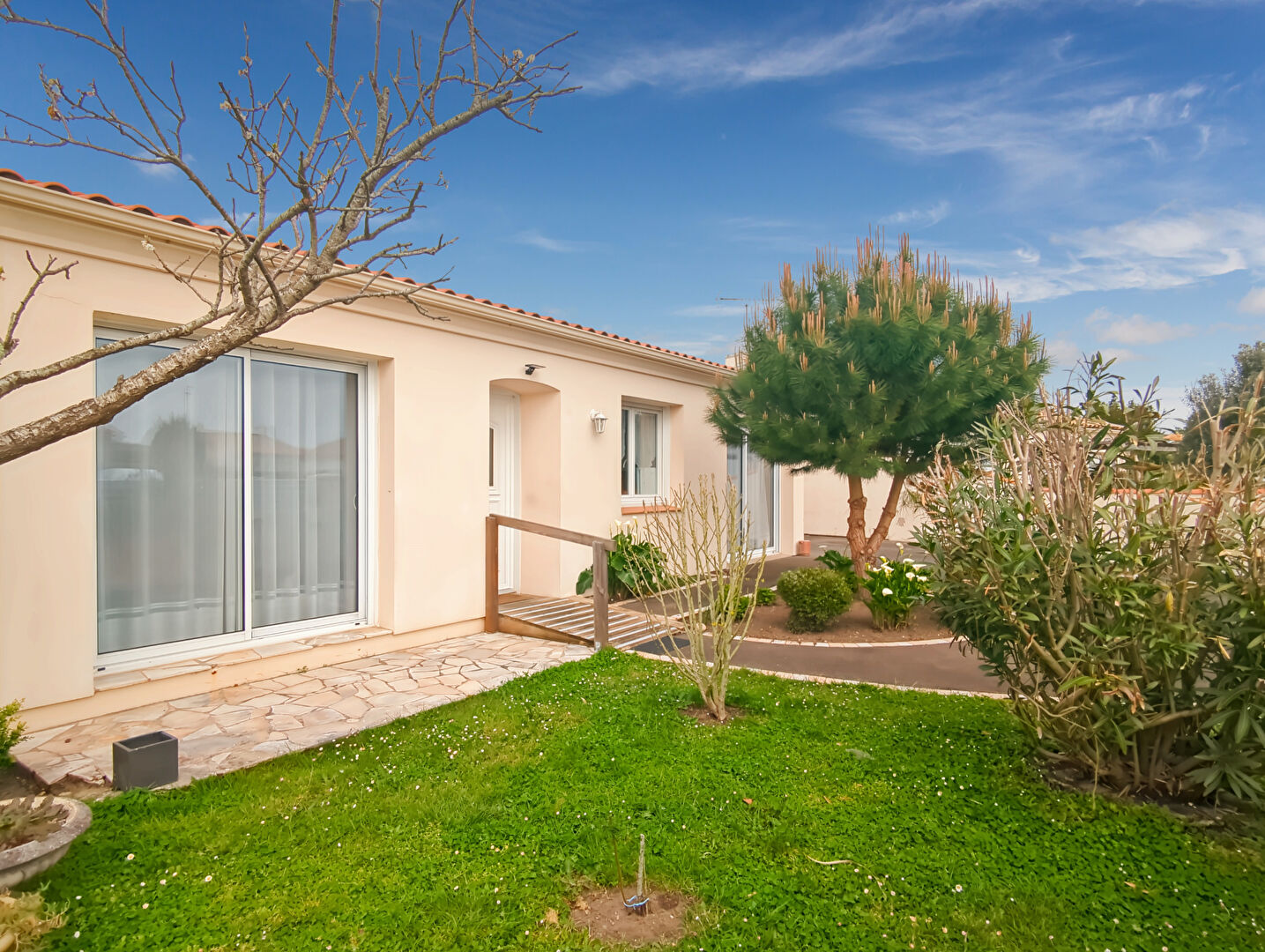Située dans un environnement privilégié, au fond d'une impasse garantissant tranquillité et sécurité, cette maison offre un cadre de vie recherché à seulement 800 mètres du centre-ville de Challans et de ses commodités accessibles à pied.