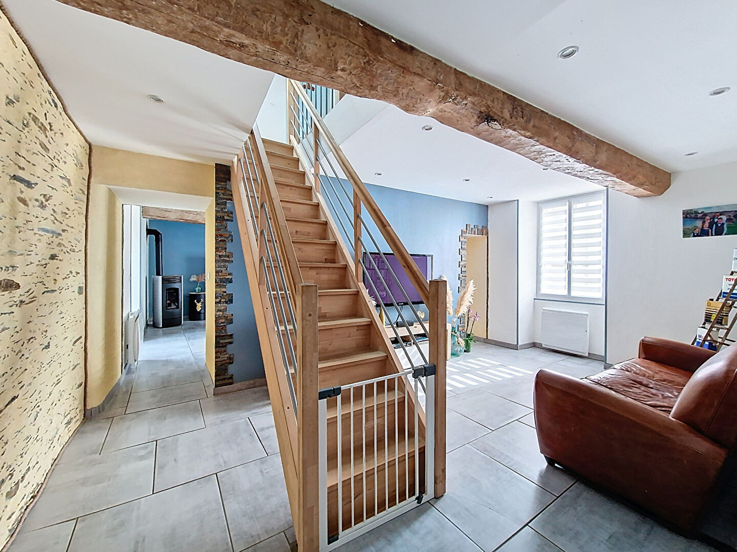 Située en plein coeur du bourg, cette maison entièrement rénovée offre un cadre de vie paisible avec un jardin bénéficiant d'une vue dégagée sur la Mayenne, le tout dans une zone non inondable.