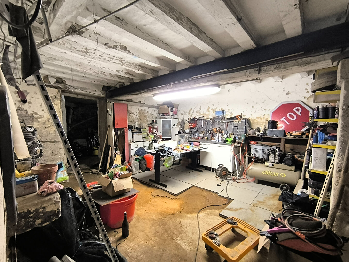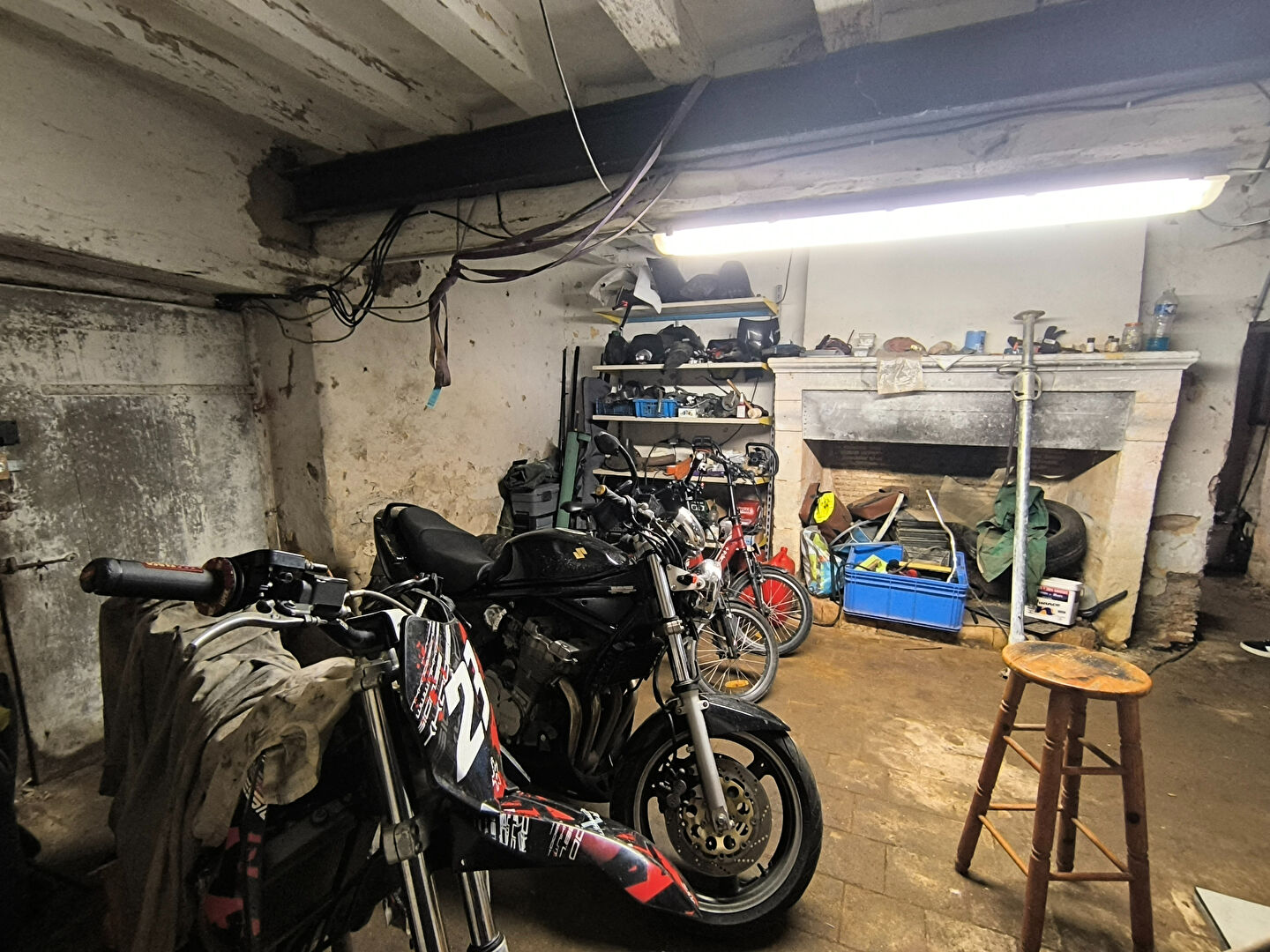 La maison dispose d'une vaste cave d'environ 70 m², répartie en trois espaces distincts, permettant de stocker vélos, motos ou matériel divers en toute facilité.