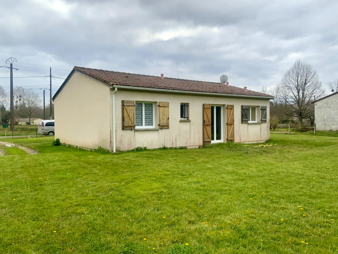 La maison dispose également de trois chambres, d'une salle de bain ainsi que de WC séparés, offrant une configuration idéale pour une famille.