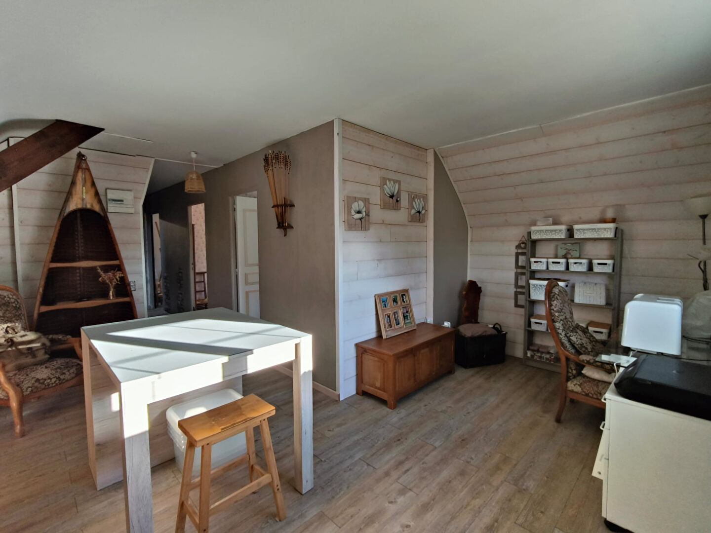 À l'étage, un palier dessert une deuxième chambre ainsi que trois autres pièces, offrant la possibilité d'aménager deux chambres supplémentaires ou un espace bureau selon vos besoins.