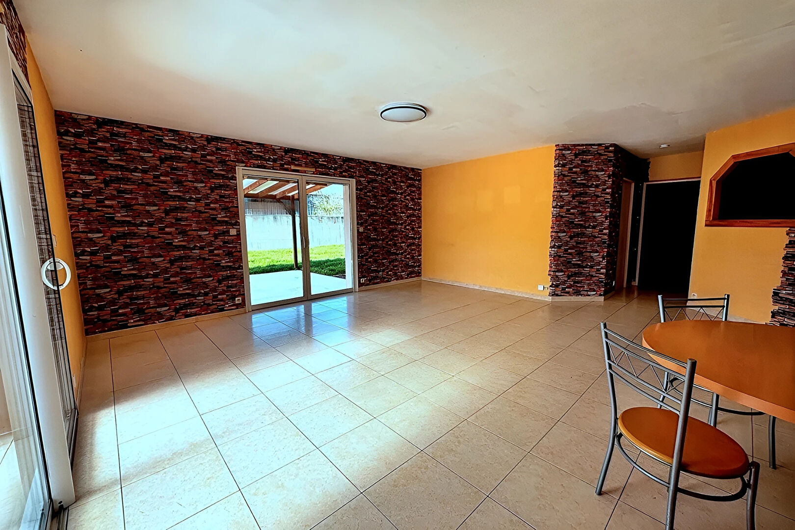 La terrasse et son préau permettent de profiter du jardin en toute saison.