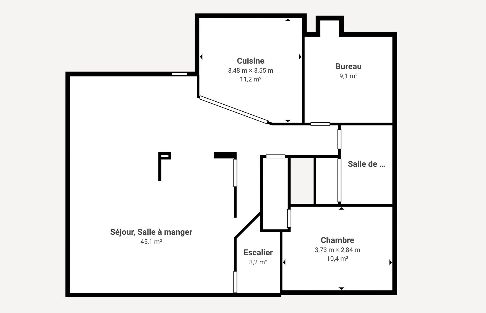 Un séjour spacieux et baigné de lumière grâce à ses larges baies orientées plein sud. Une cuisine aménagée et équipée ouverte sur le salon, un bureau, une chambre, une salle d'eau et des toilettes séparées complètent ce niveau.