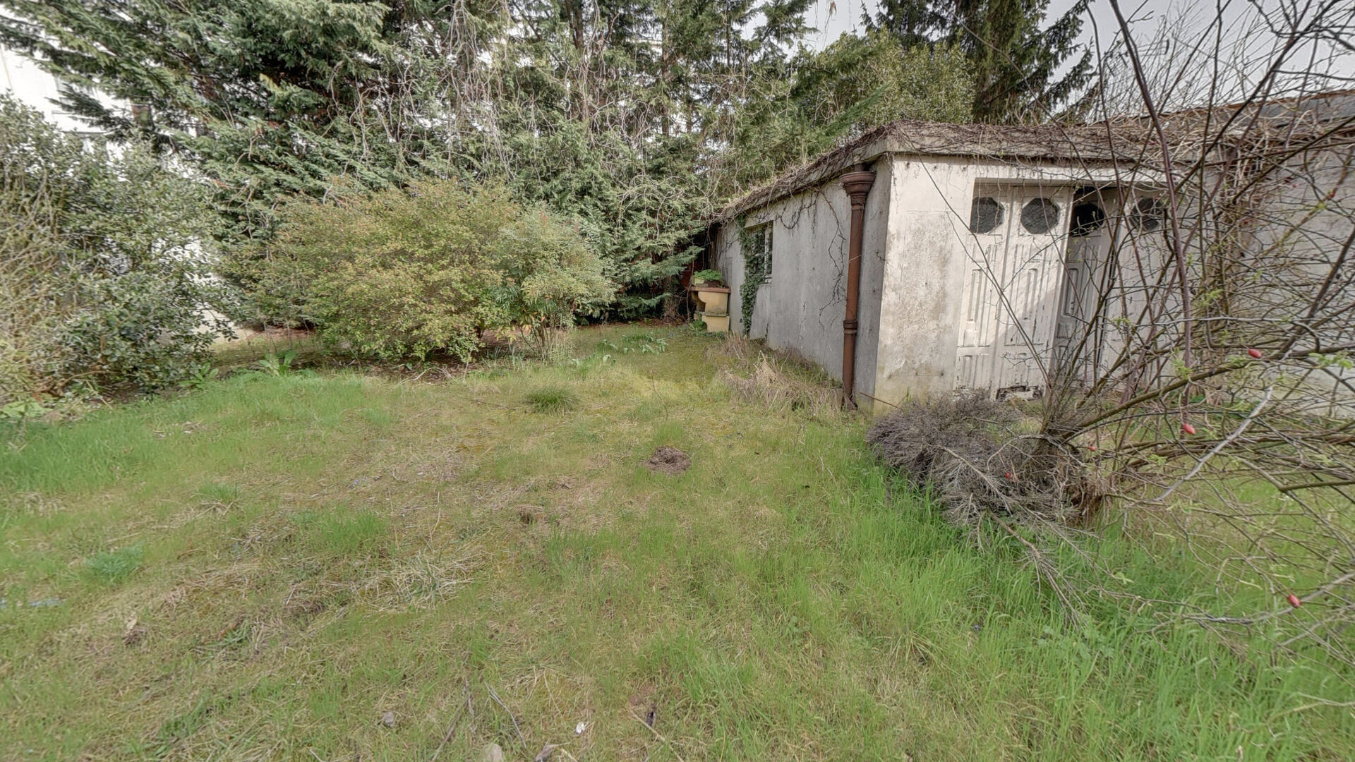 Cave totale en sous-sol et garage indépendant en fond de parcelle.