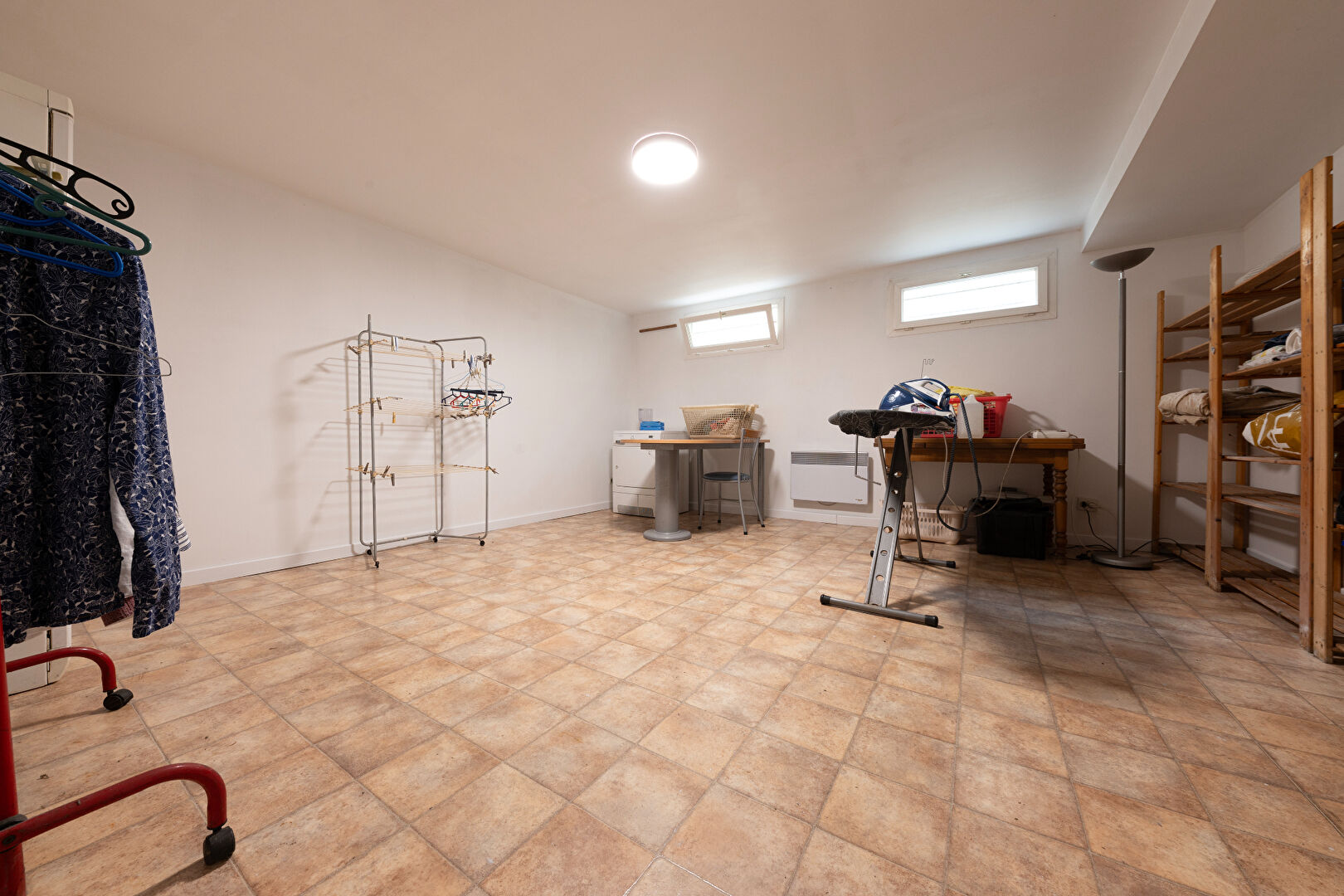 Un vaste sous-sol total de 90 m² offre de nombreux aménagements : buanderie, salle de jeux, atelier, cave à vin et garage.