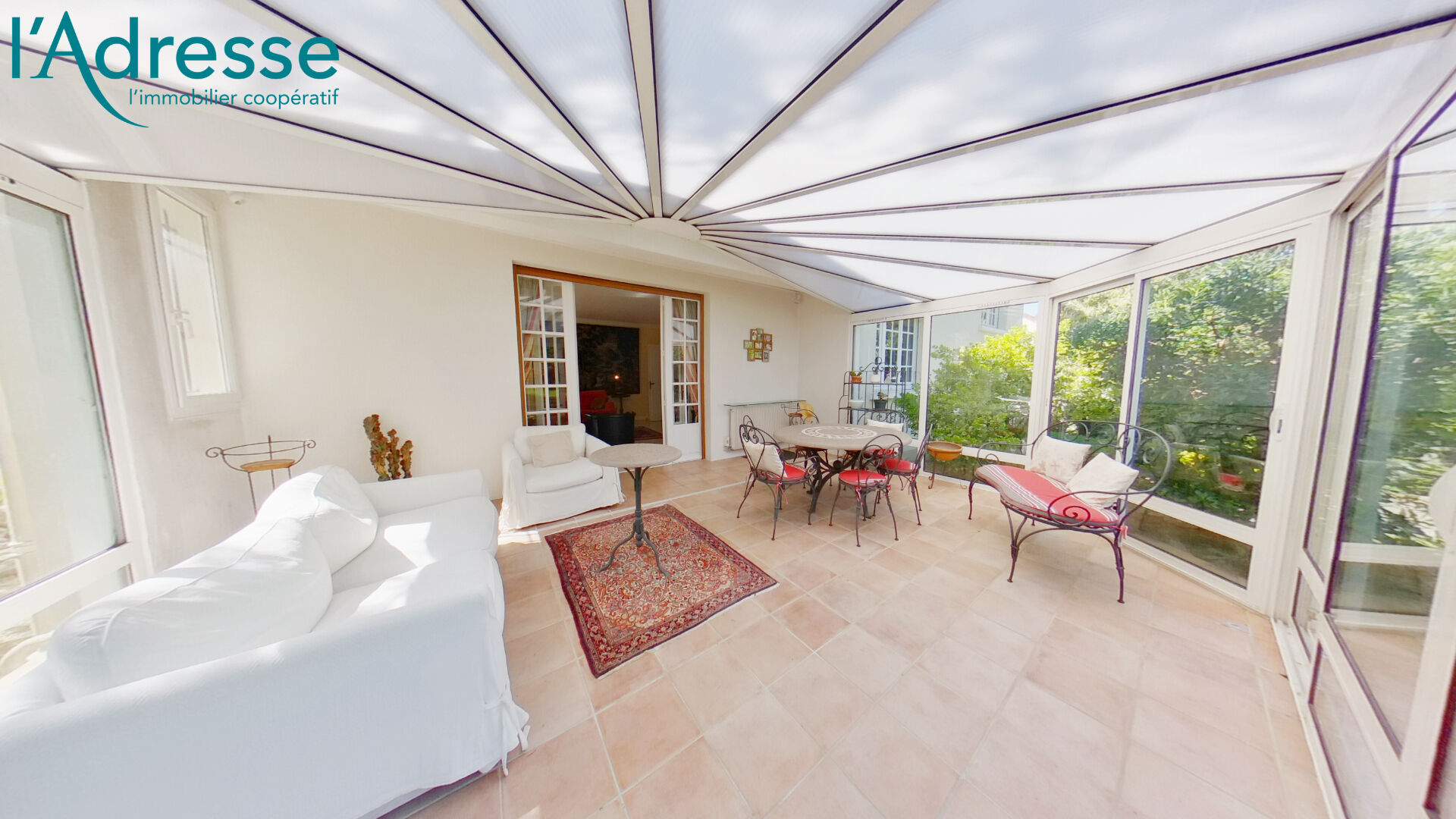 D'un salon-séjour lumineux avec accès direct à une spacieuse véranda, idéale pour vos moments de détente