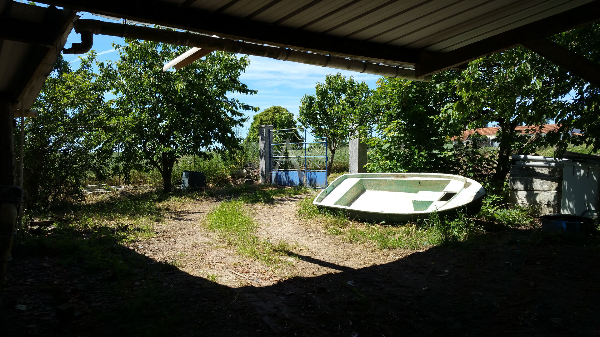 Terrain clos et arboré avec Car-port pour voitures et camping car. Dépendances agricoles.