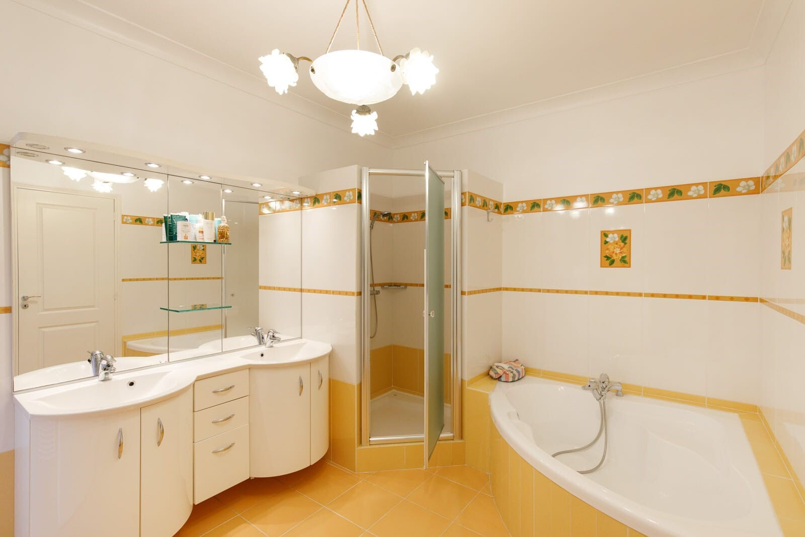 Arrière-Pays Cannois - Lumineuse propriété bourgeoise années 1970 - 300 m² de surface utile (250 m² habitables) - entièrement rénovée - située en secteur très résidentiel - Environnement de grande qualité - Beaux volumes (double réception de 68 m²) - lumière et soleil - confort - se compose de 8 pièces dont 6 chambres - (pièce de hammam - lingerie - cave et dépendance pour une surface de 58 m² en annexes)