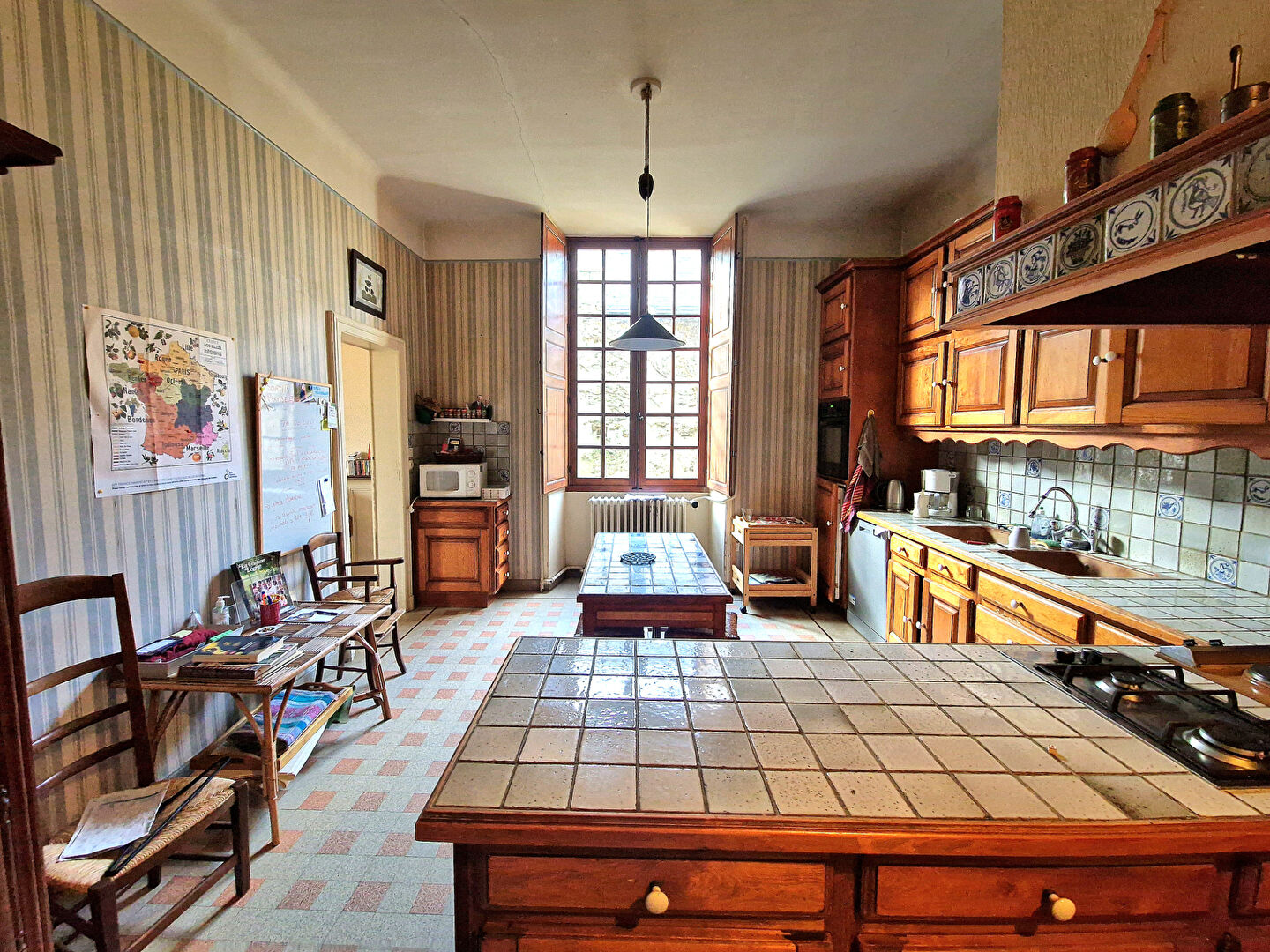 Dès l'entrée, vous découvrirez un bel espace qui dessert harmonieusement les pièces de vie : un salon chaleureux avec cheminée, un séjour convivial, une cuisine, ainsi qu'un magnifique escalier apportant caractère et élégance à l'ensemble.