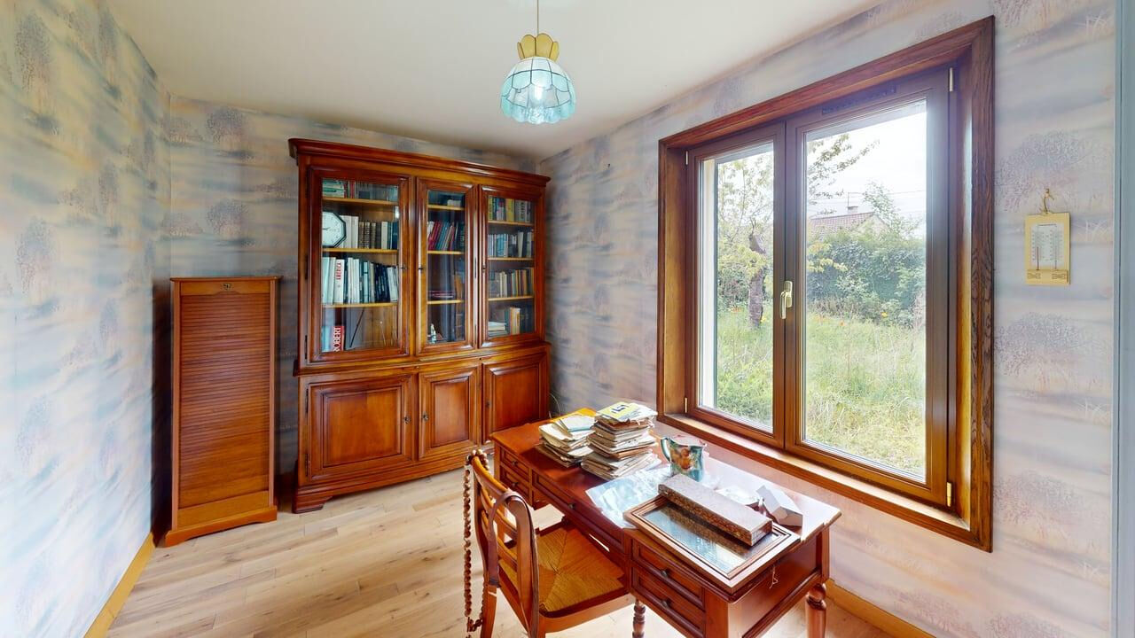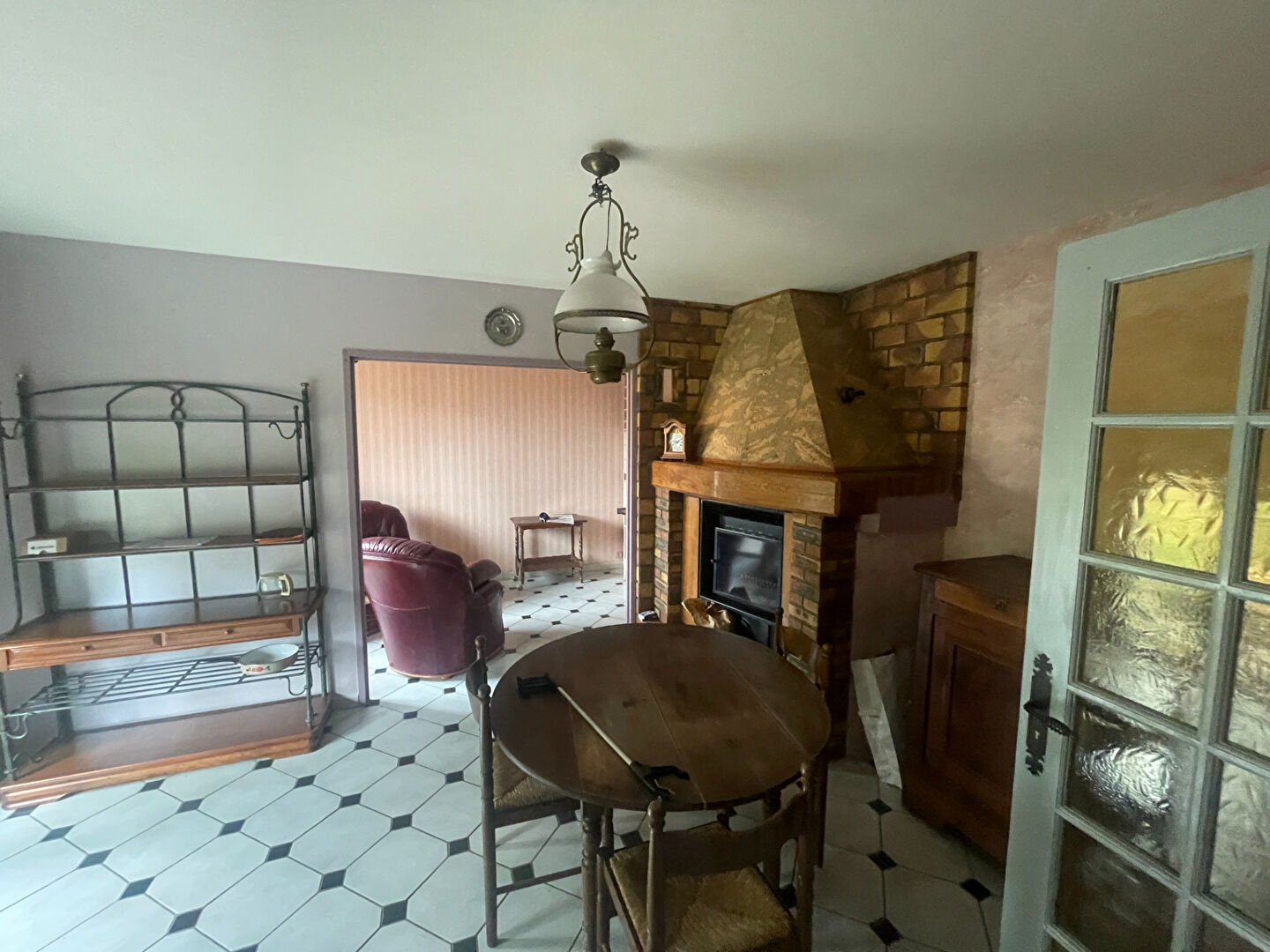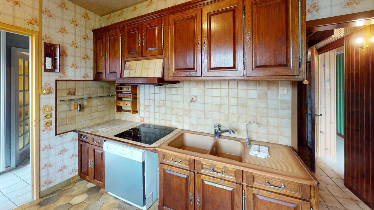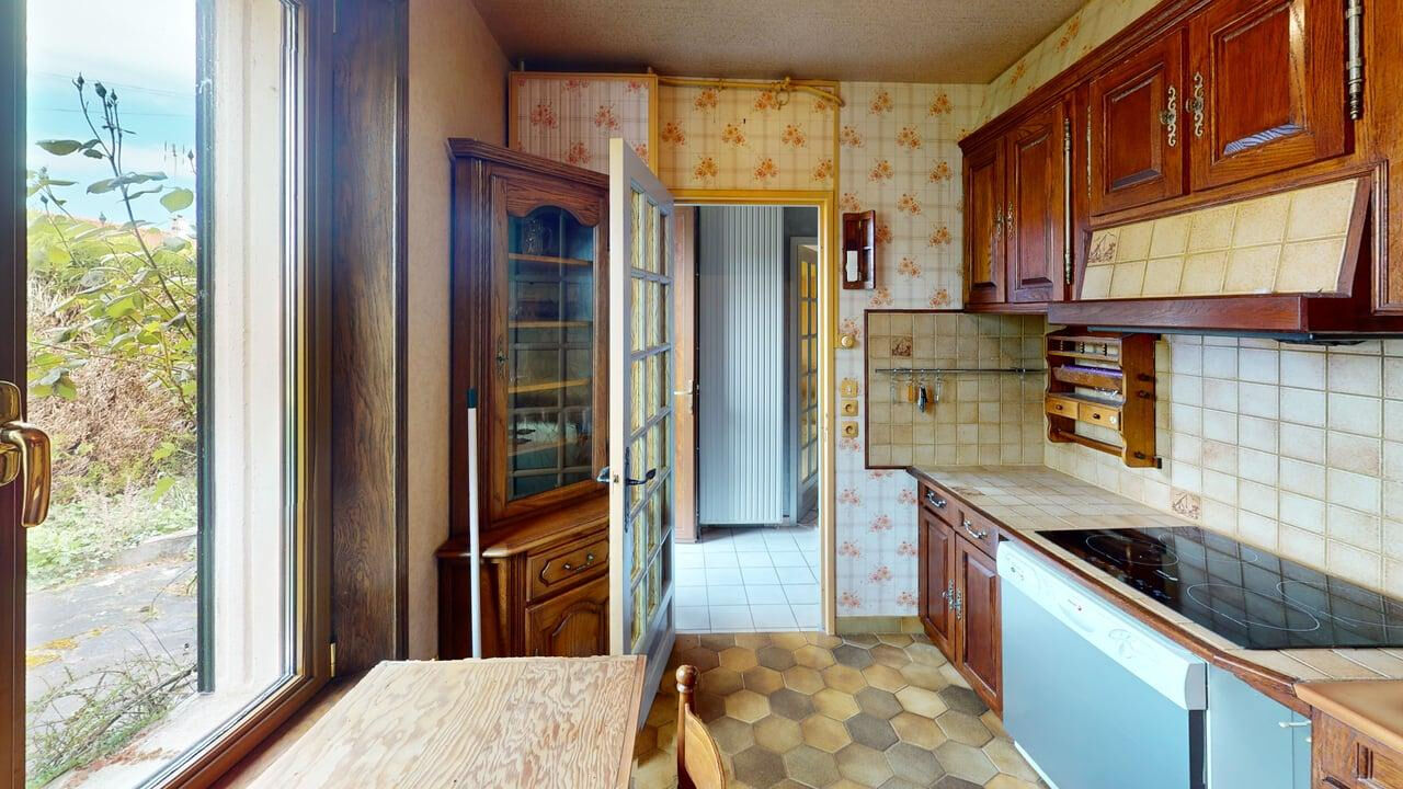 Maison non mitoyenne de Plain Pied d'environ 104m2 habitables comptant une entrée, un salon séjour avec insert de 25m2, une cuisine aménagée, une arrière cuisine et une pièce.