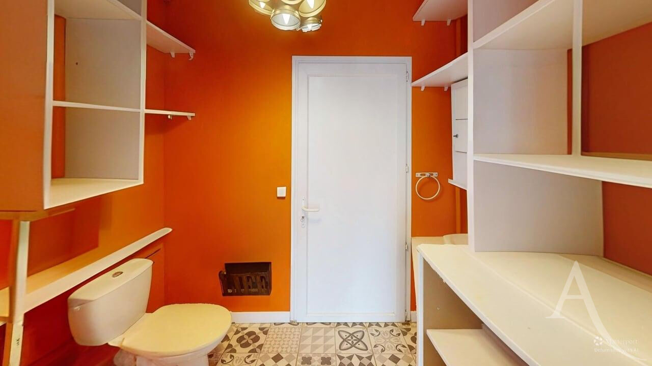 Entrée/séjour, cuisine aménagée ouverte sur salon. Wc avec grands rangements.