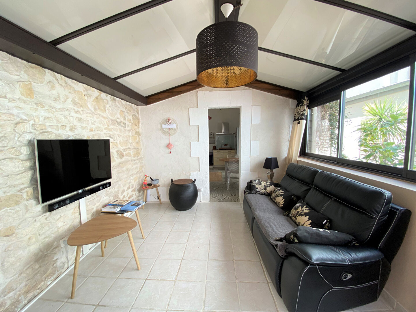 La cour est accessible par le studio, la cuisine et la véranda, et offre un espace cocooning de détente.