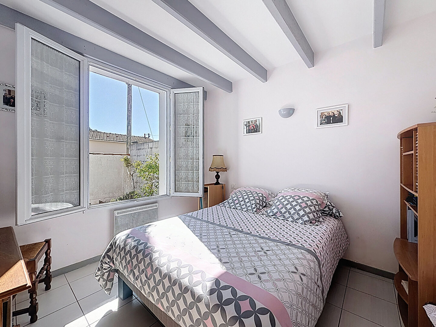 À l'étage, une chambre sous rampant, parfaite pour un adolescent, un espace bureau ou une chambre d'amis.