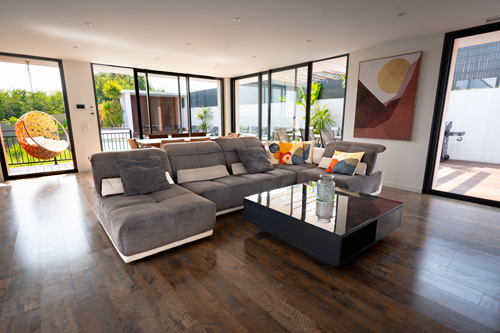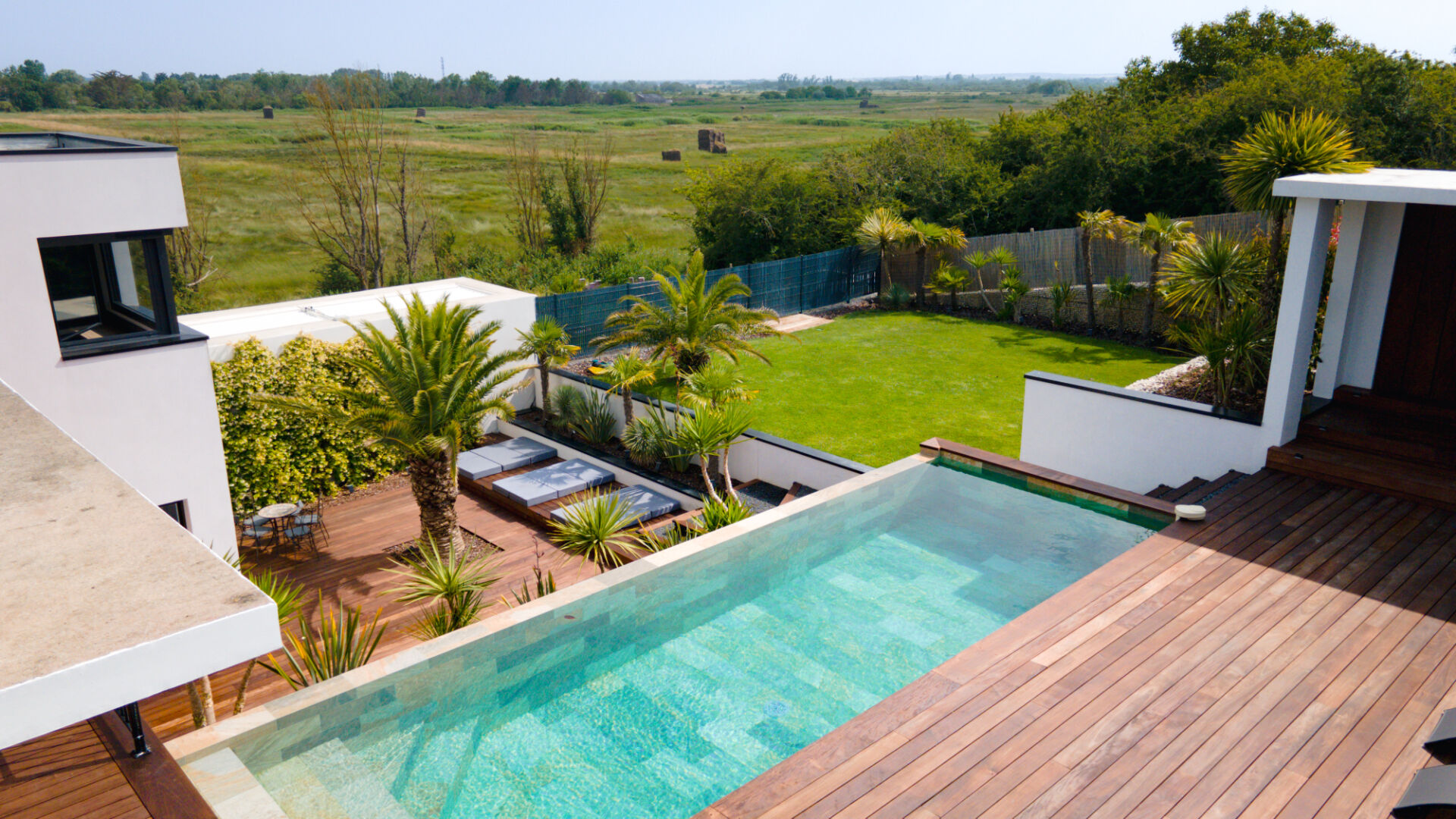 Prestations haut de gamme : domotique, climatisation réversible, aspiration centralisée, arrosage automatique et rangements sur mesure.