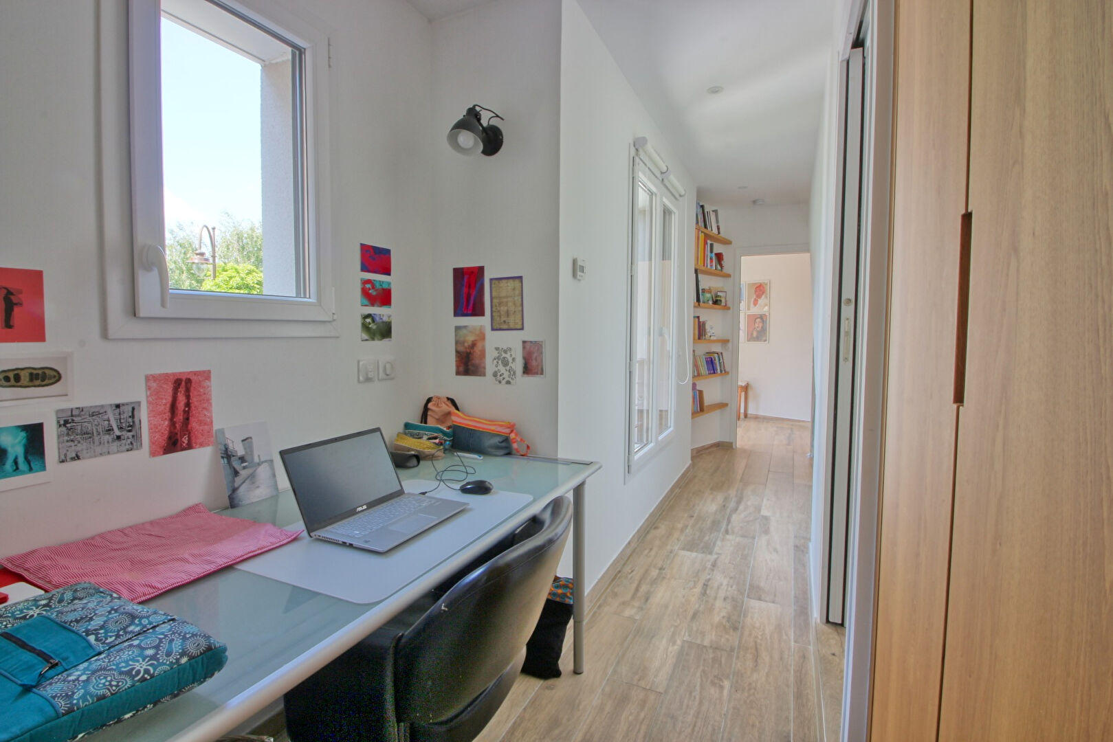Au 1er étage : palier, coin bureau, placards, une chambre d'enfant de 10 m² avec placards, pouvant servir également de bureau ou de salon TV, une salle d'eau avec WC et coin buanderie.