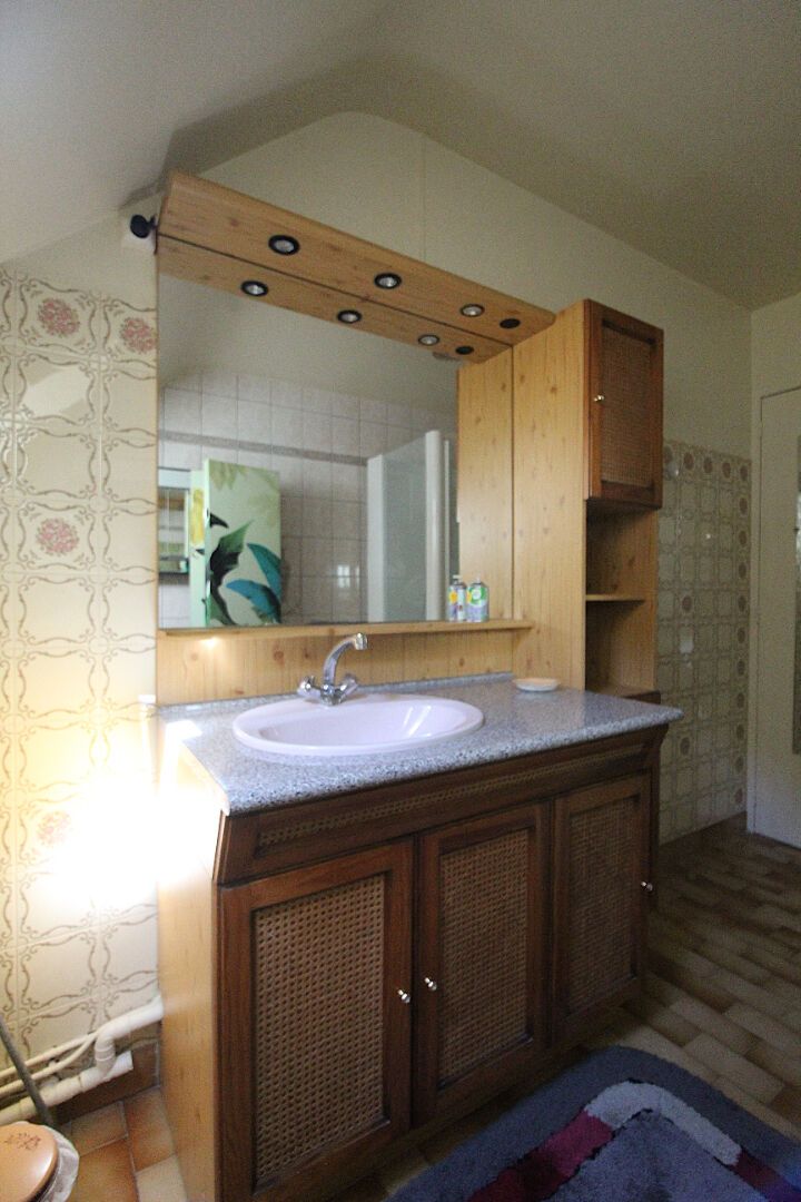 Cette maison vous offre une vie de plain pied avec entrée, salle à manger, salon, cuisine, W.C., Chambre avec salle d'eau, A l'étage : quatre chambres avec chacune leur évier et une salle de bains.