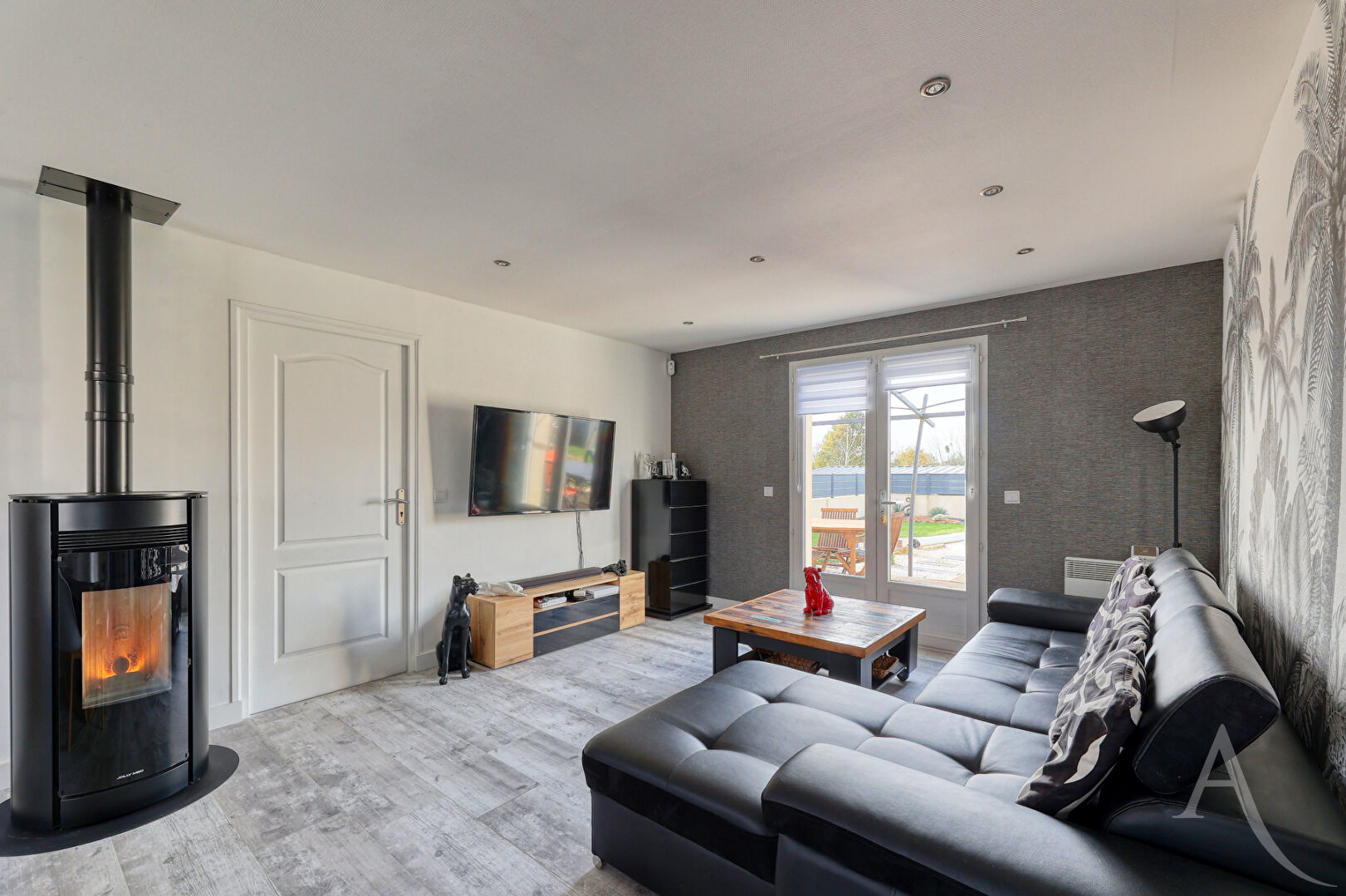 La pièce de vie, lumineuse et conviviale, se compose d'un salon et d'une cuisine ouverte entièrement équipée, idéale pour partager des moments en famille.