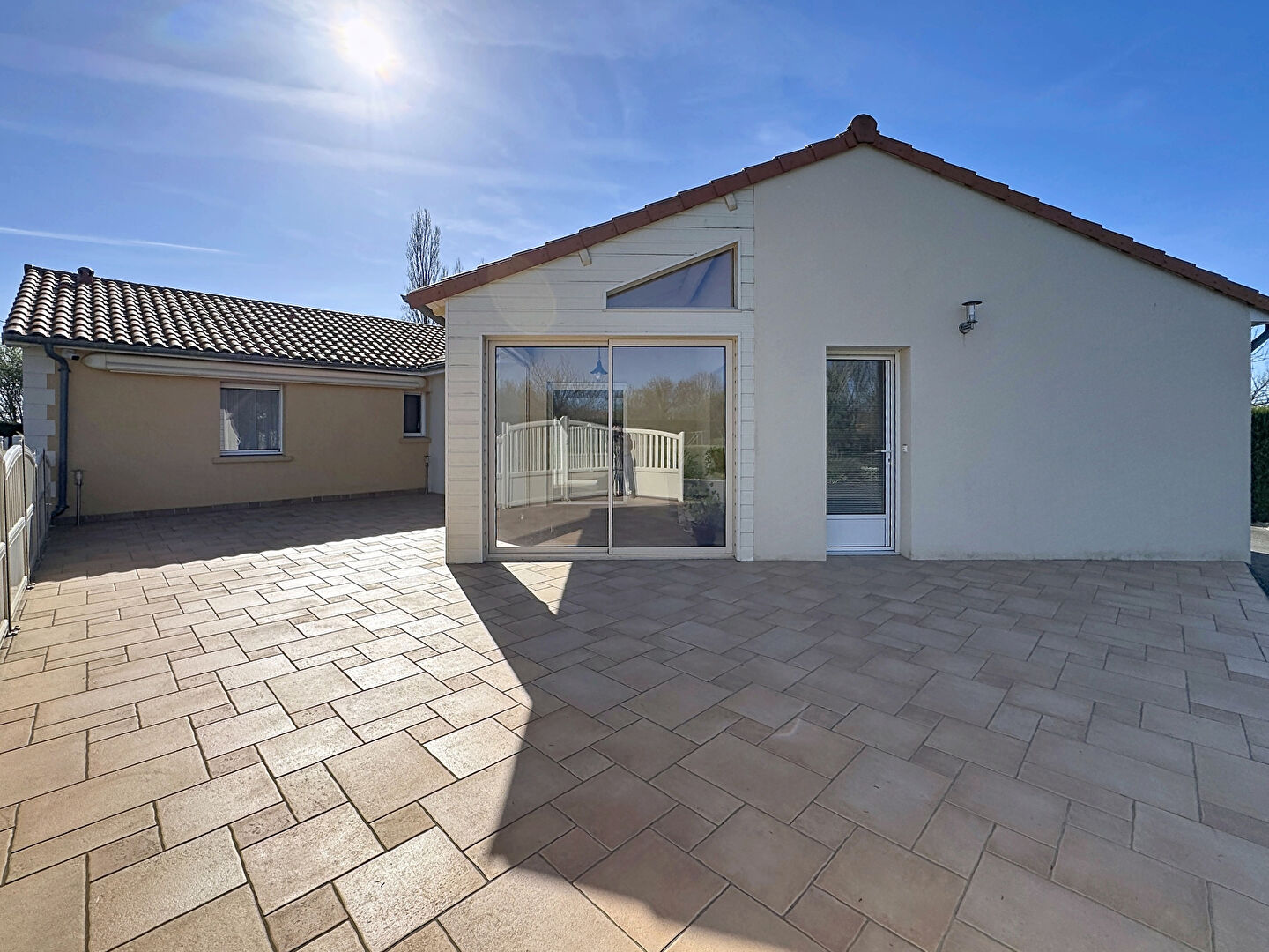 L'espace de vie principal, baigné de lumière, s'articule autour d'un salon chaleureux et d'une cuisine ouverte, aménagée et équipée, prolongée par un patio-terrasse convivial idéal pour profiter de moments en famille ou entre amis.