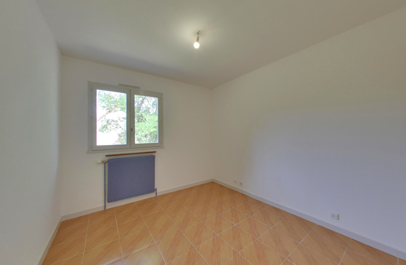 L'entrée dessert un grand salon-séjour lumineux avec cheminée et accès terrasse, cuisine indépendante, deux chambres dont une avec accès terrasse, salle de bains, wc.