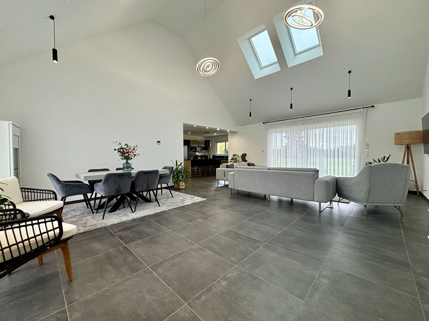 Dans un environnement calme et champêtre cette maison aux lignes contemporaines et aux prestations soignées offre de plain pied un vaste séjour salon baigné de lumière grâce à son plafond cathédrale, une cuisine entièrement aménagée et équipée avec espace repas et arrière cuisine confortable. Côté nuit les quatre suites spacieuses disposent chacune d'une pièce d'eau et d'un dressing aménagé.