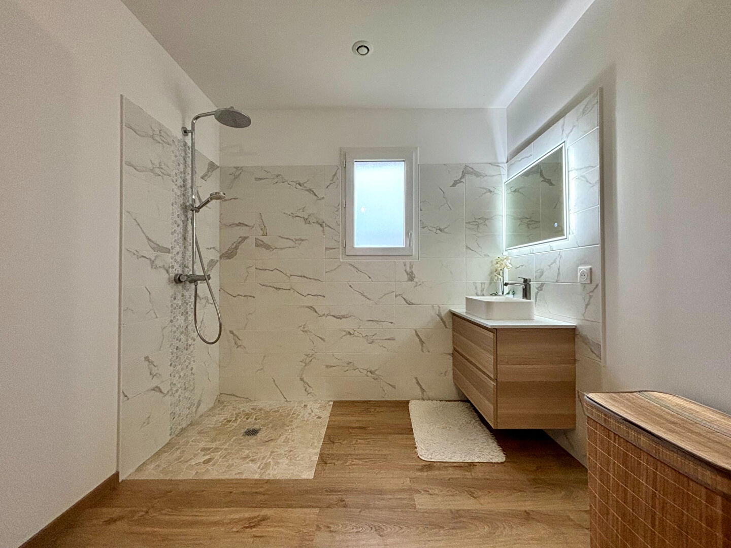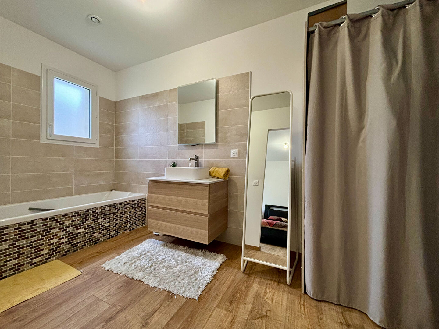 Cette maison ne pourra que vous séduire grâce à ses lignes modernes, sa fonctionnalité et ses performances énergétiques actuelles atteintes notamment grâce à son isolation et son système de chauffage au sol par pompe à chaleur.