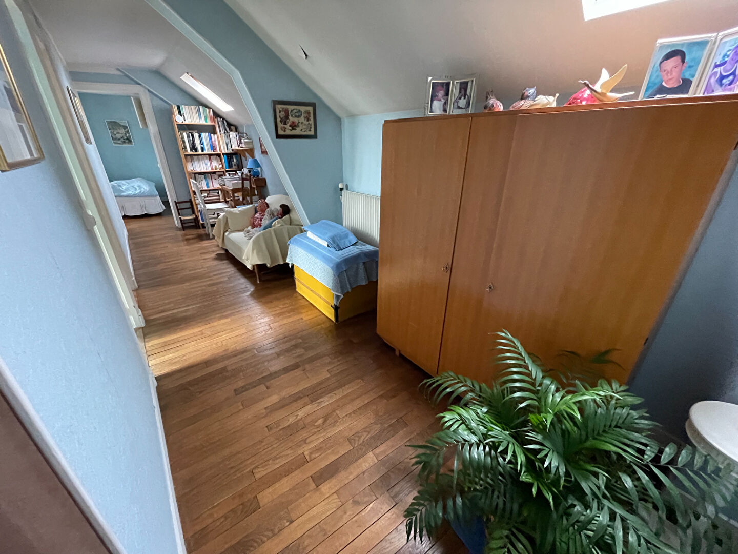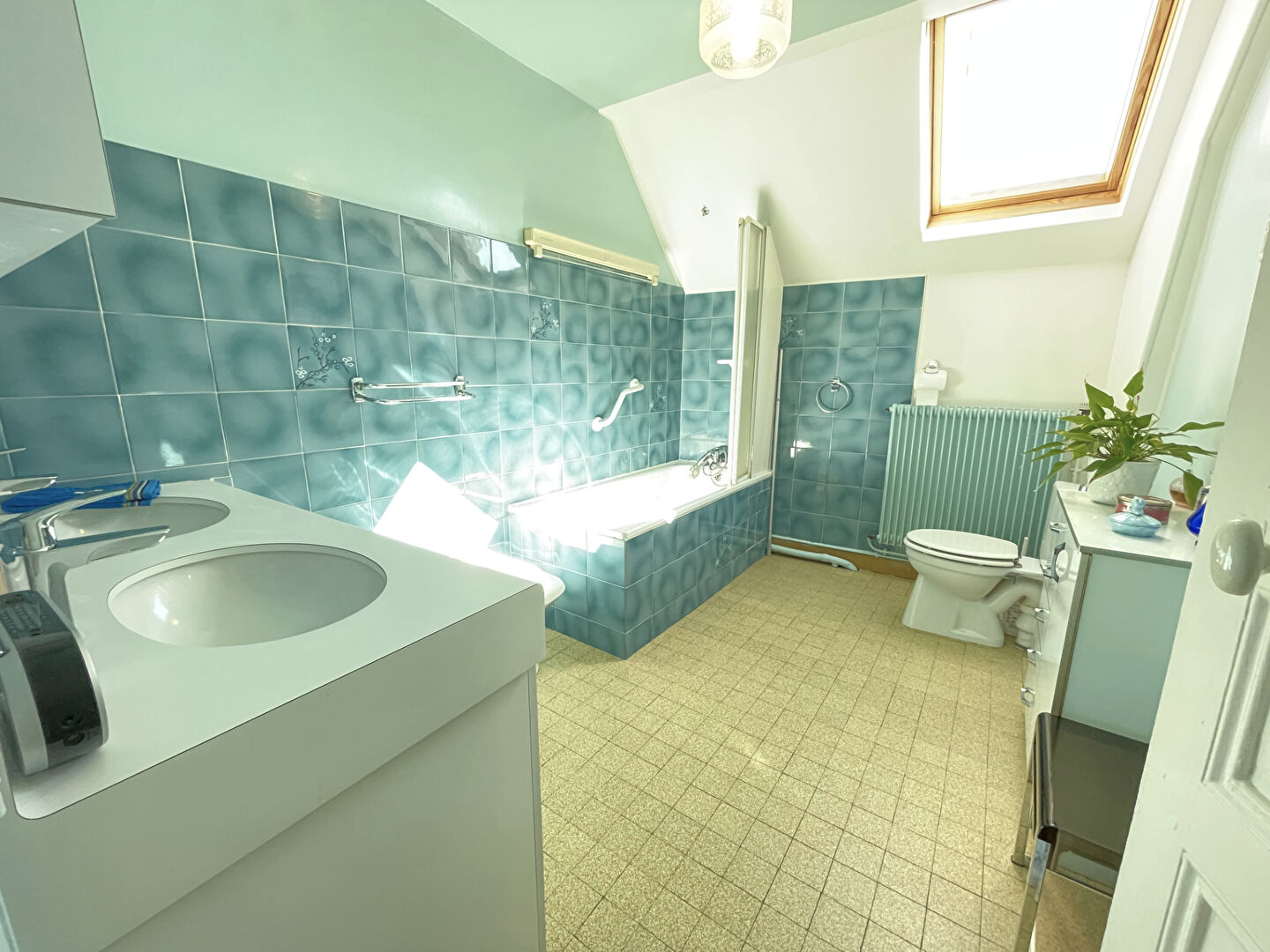 Elle dispose au rez-de-chaussée : d'une entrée avec rangement, d'un séjour double de 35 m2 avec cheminée et d'une cuisine indépendante avec accès direct à la terrasse et au jardin et d'un wc ; et l'étage offre un bel espace qui est actuellement agencé en 2 chambres, une salle de bains avec wc. et un grand dégagement idéal pour y installer un bureau !