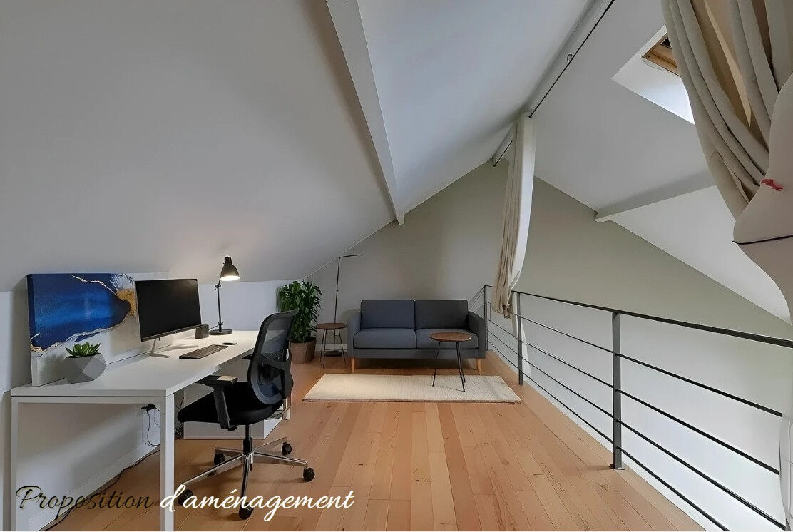 Au rez-de-chaussée, vous découvrirez une entrée desservant un vaste espace de vie de 37m² regroupant cuisine, salle à manger et un coin salon, un bureau et un agréable salon cathédrale.