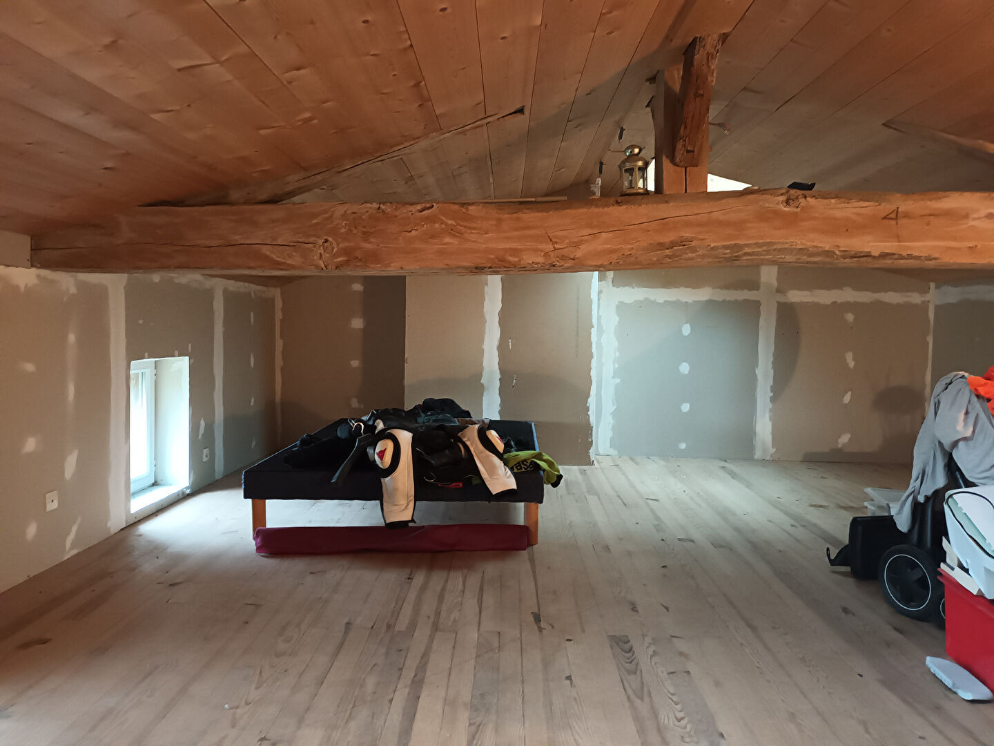 Toiture refaite, isolation laine de roche.
