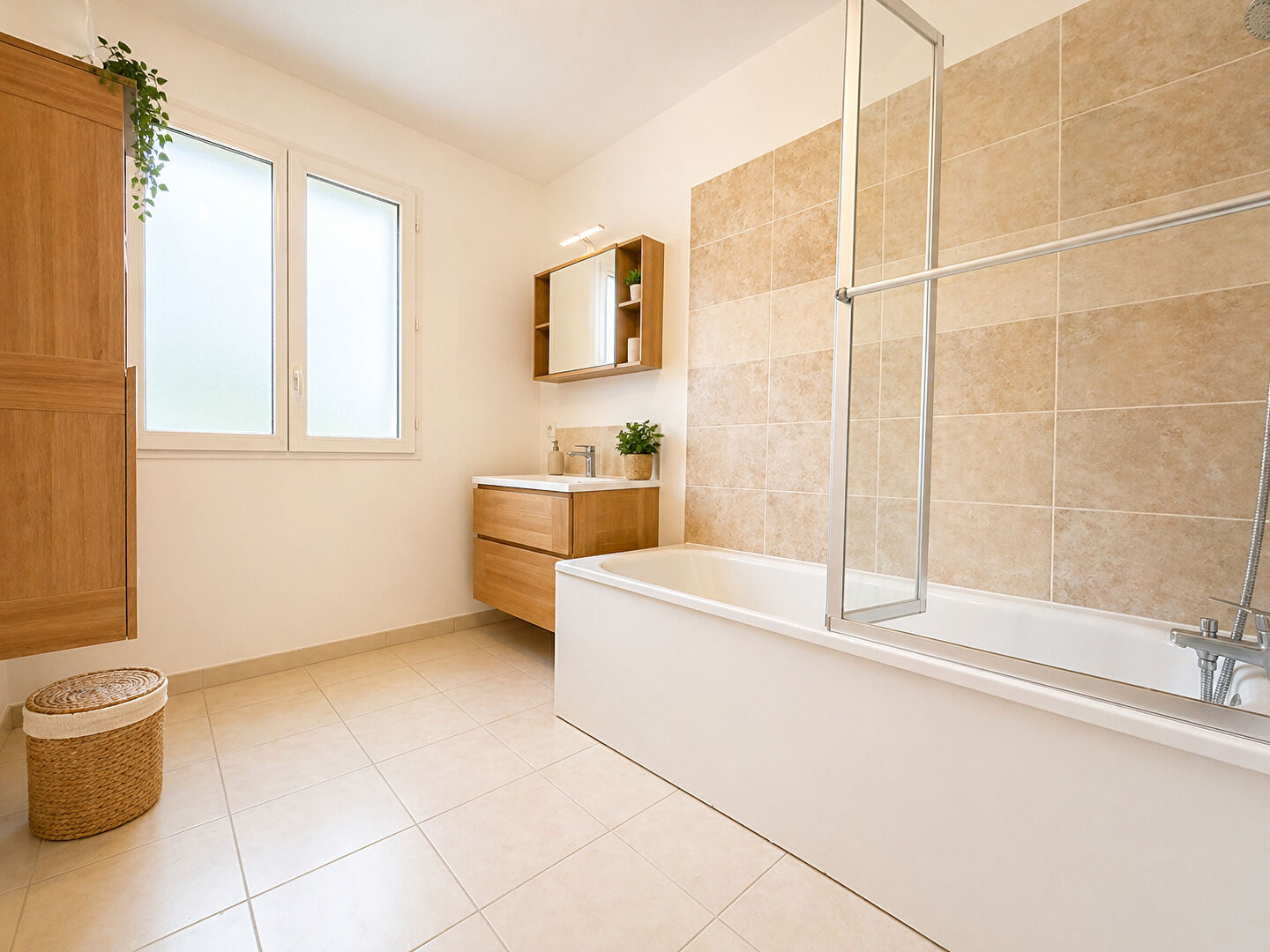 Elle se compose d'un séjour lumineux, d'une cuisine fonctionnelle avec possibilité d'ouverture sur le salon pour créer une grande pièce de vie moderne et conviviale, ainsi que de 4 chambres permettant d'accueillir toute la famille. Vous bénéficierez également d'une salle d'eau en rez-de-chaussée, idéale pour le quotidien, et d'une salle de bains à l'étage pour plus de confort.
