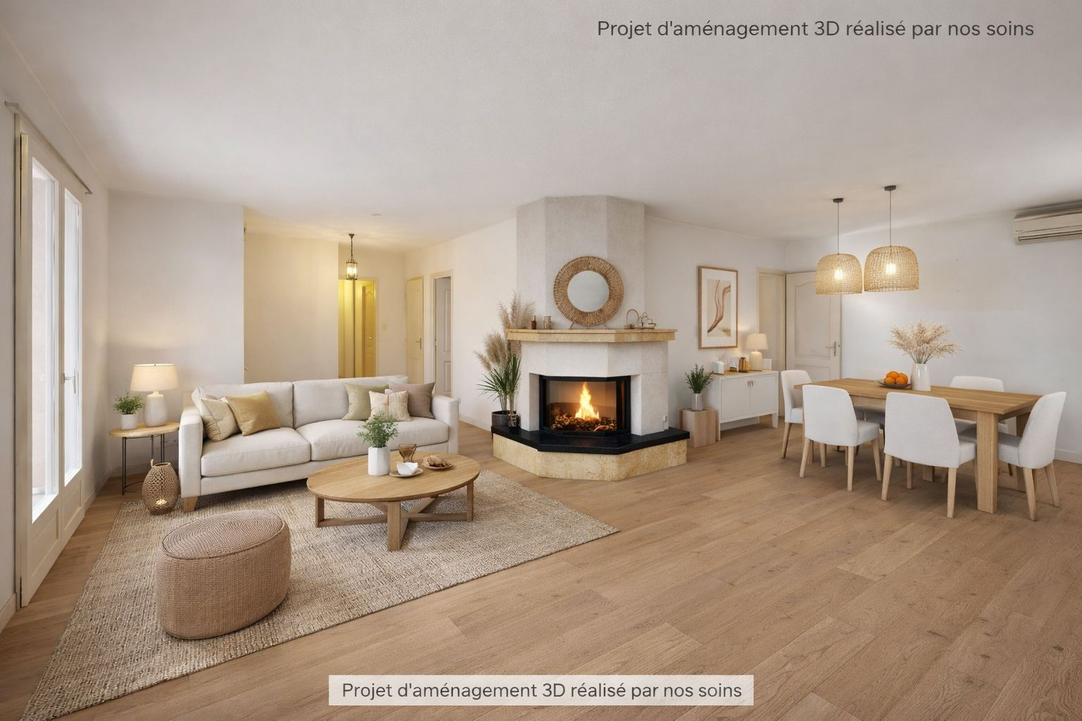 Dès l'entrée, vous découvrirez une spacieuse pièce de vie lumineuse climatisée et avec une cheminée, une cuisine indépendante pouvant facilement s'ouvrir ( pas de porteur) sur le séjour afin d'offrir un magnifique espace de plus de 55 m², vous profiterez aussi d'un espace cellier buanderie attenant.