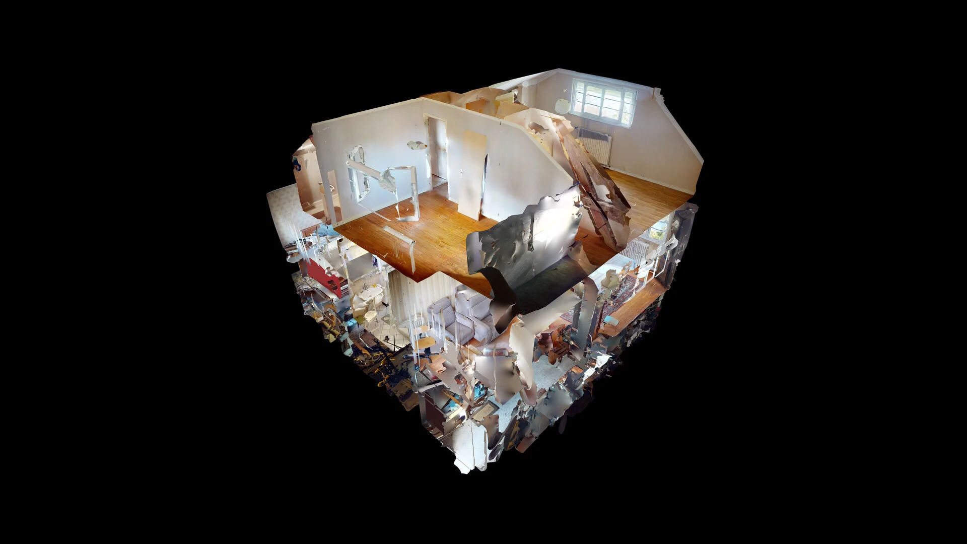 Au rez-de-chaussée : une entrée, un séjour lumineux, une cuisine, une chambre et une salle d'eau.