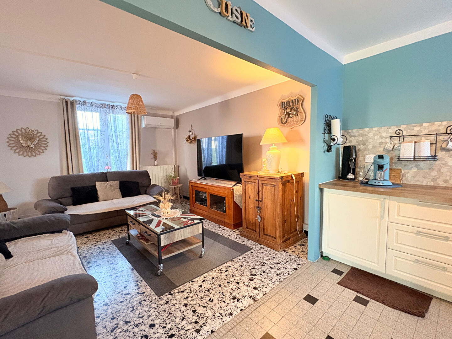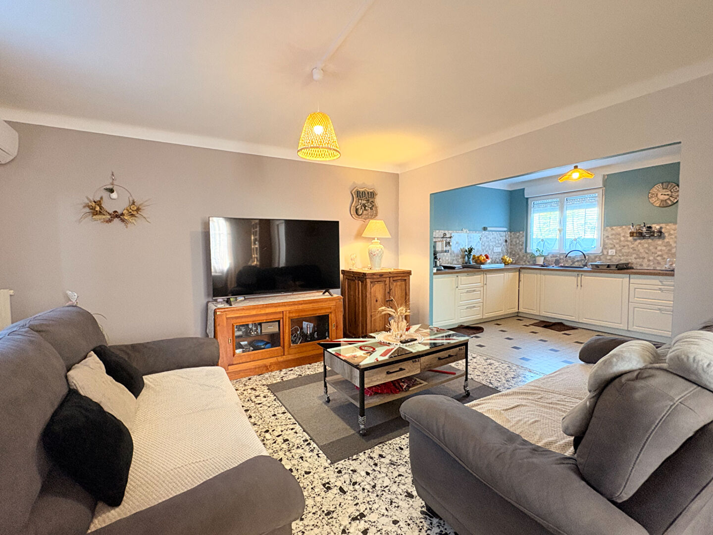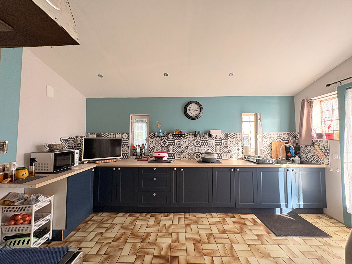 Elle se compose de trois chambres lumineuses, d'une belle pièce de vie spacieuse avec cuisine ouverte équipée et aménagée, ainsi que d'une seconde cuisine indépendante, elle aussi entièrement équipée, parfaite pour plus de confort ou pour un projet professionnel.