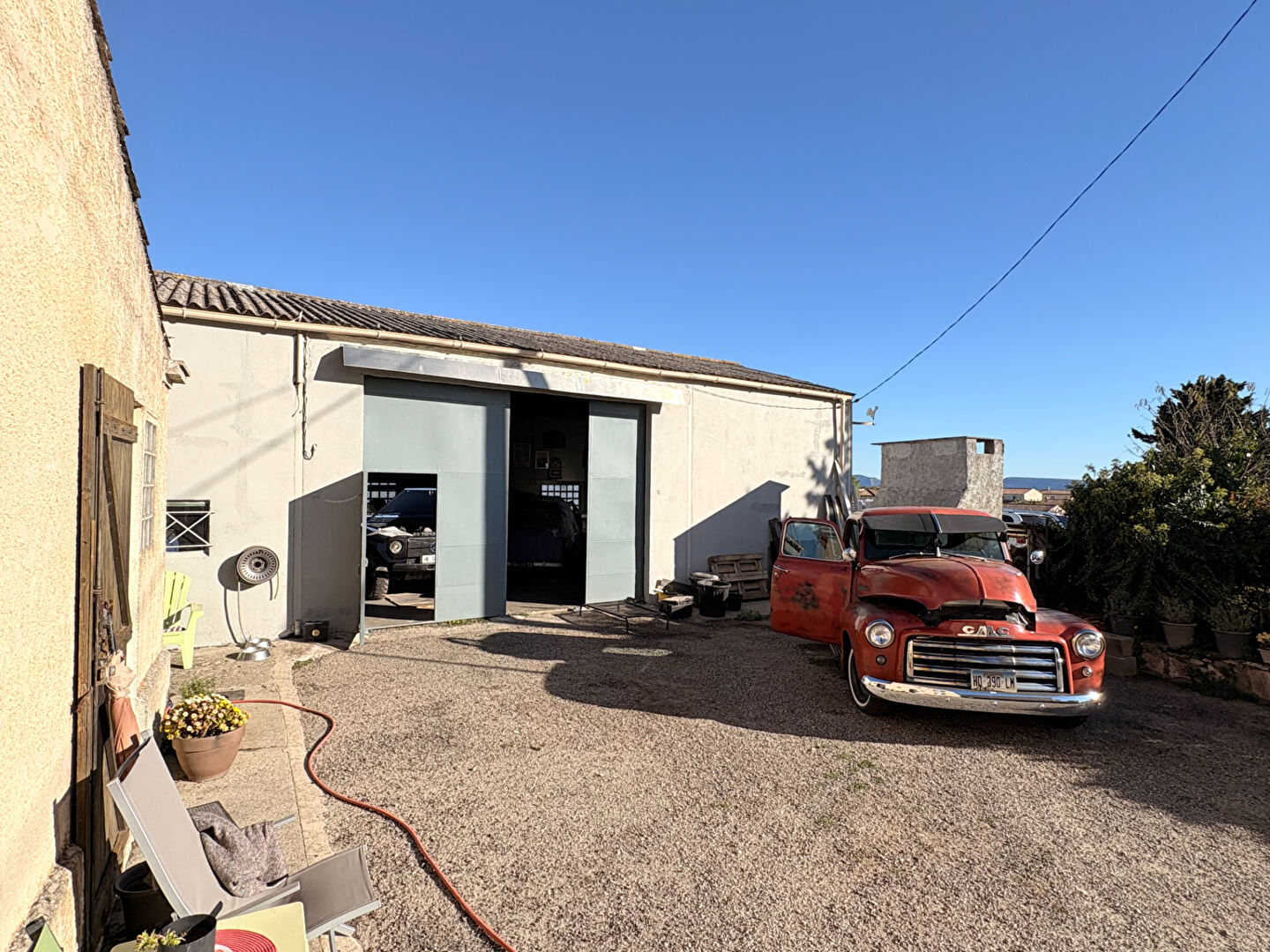Le véritable atout de cette propriété : un grand hangar de 150 m², idéal pour un artisan, un entrepreneur ou toute activité nécessitant un vaste espace de stockage ou d'atelier.