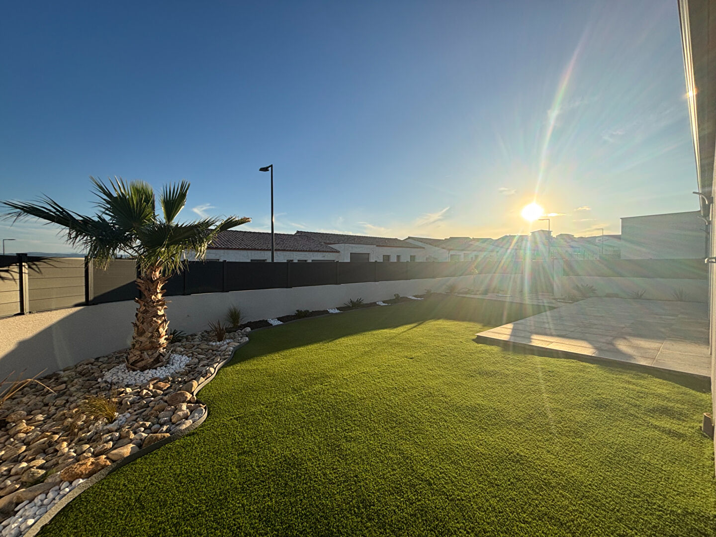 Découvrez cette superbe maison récente, sortie de terre il y a à peine quelques mois, située au coeur du charmant village de Conques-sur-Orbiel, à seulement 10 minutes au nord de Carcassonne. Un bien pensé pour allier qualité de vie, modernité et praticité au quotidien. Dès l'entrée, vous serez séduit par la pièce à vivre spacieuse et baignée de lumière, offrant un accès direct à la terrasse et au jardin paysagé, parfaitement entretenu et sans aucun vis-à-vis. Un espace de vie convivial où confort et esthétisme se rencontrent. La partie nuit se compose de trois belles chambres, dont une suite parentale avec dressing sur mesure et salle d'eau privative. Une seconde salle d'eau indépendante vient compléter l'ensemble, apportant confort et fonctionnalité à toute la famille.