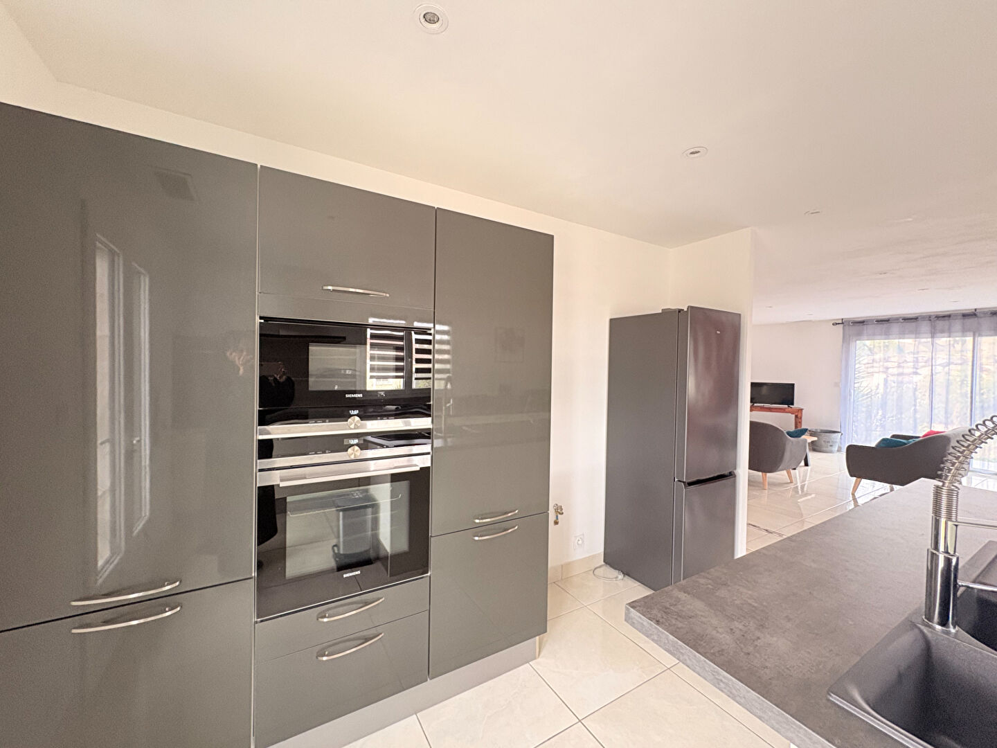 Dès l'entrée, la maison séduit par sa fonctionnalité et son confort moderne. L'espace de vie, lumineux et convivial, s'ouvre sur une cuisine entièrement équipée, pensée pour partager de beaux moments en famille ou entre amis.