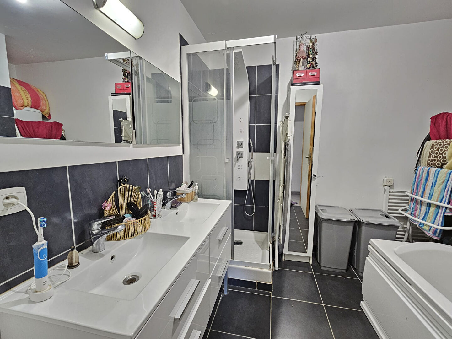On y retrouve une grande de pièce de vie lumineuse avec accès direct sur la terrasse et vue dégagée, une cuisine entièrement aménagée et équipée avec accès également sur la terrasse, un bureau pouvant faire office de chambre, trois chambres, salle de bains complète ( baignoire et douche) et buanderie.