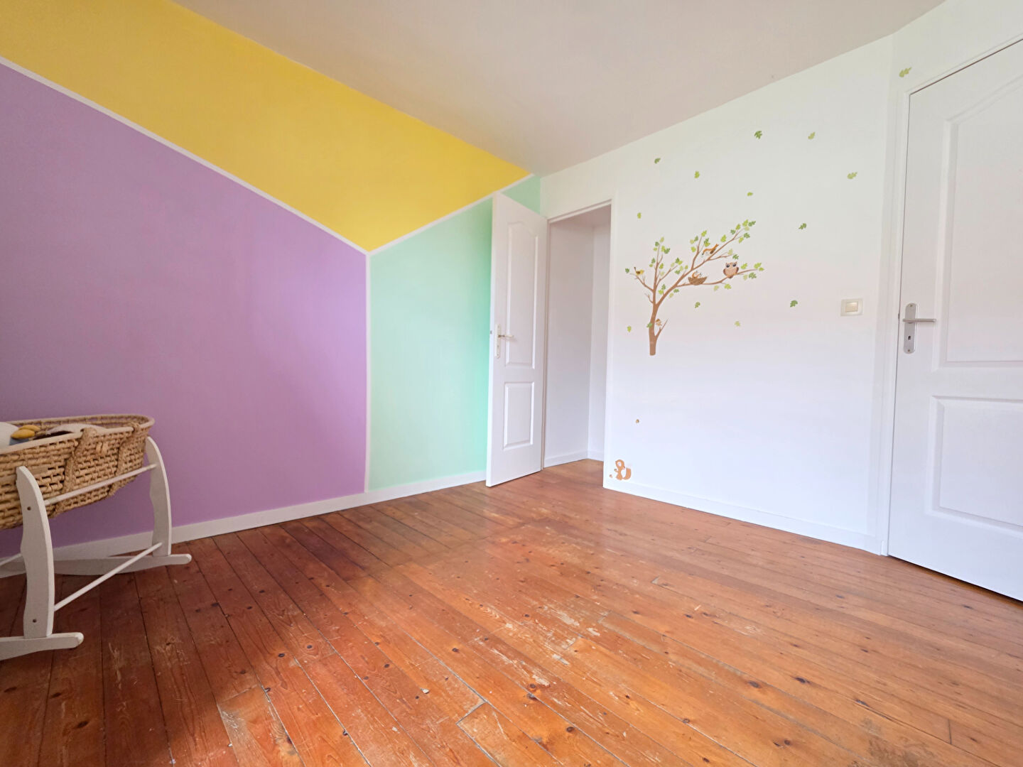 La maison se compose au rez-de-chaussée d'une entrée, d'une cuisine indépendante non aménagée, d'un séjour lumineux et d'un WC séparé. À l'étage, le palier dessert deux chambres ainsi qu'une salle d'eau avec WC. Les combles ont été aménagés en troisième chambre, idéale pour un espace nuit supplémentaire, un bureau ou une chambre d'ado.