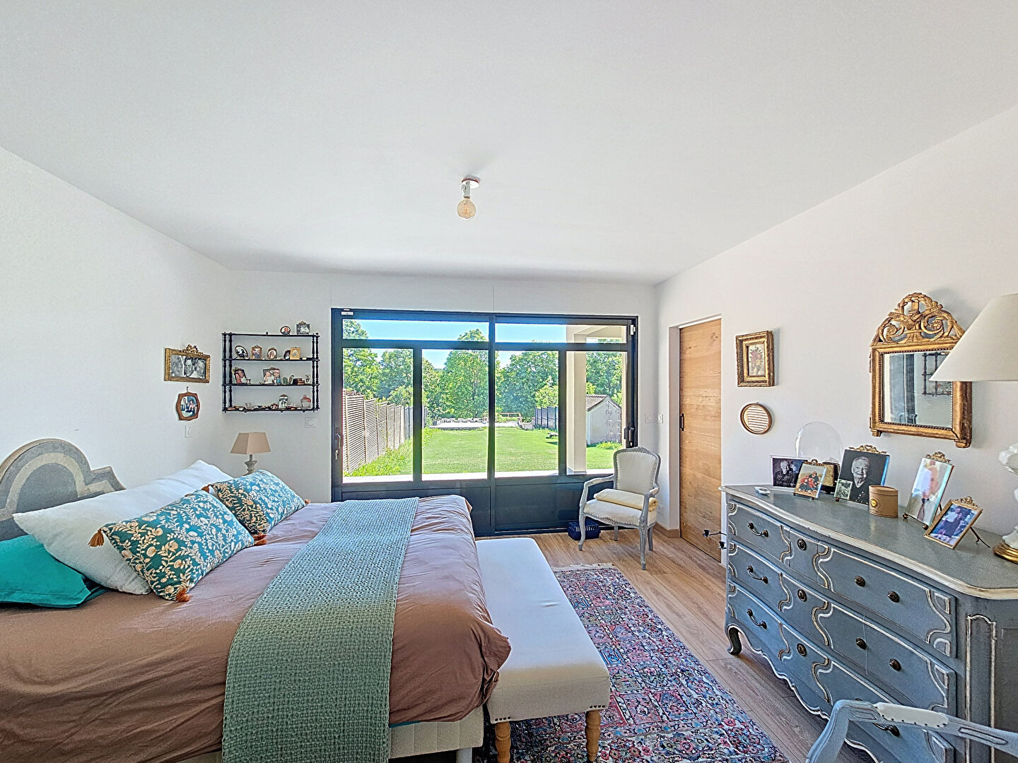 D'une surface généreuse de 204 m², elle s'ouvre sur un terrain de 606 m² exposé plein sud, agrémenté de deux terrasses, d'un jardin en surplomb et d'une vue dégagée sur la campagne environnante, avec le Grand Morin en toile de fond.