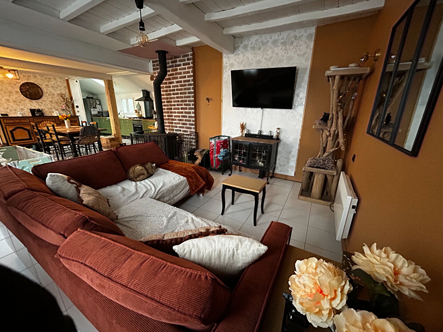 Dès l'entrée, vous serez séduit par une élégante cuisine ouverte, parfaitement aménagée, qui s'intègre harmonieusement à un bel espace salon-séjour baigné de lumière. Un lieu chaleureux et convivial, idéal pour partager de précieux moments en famille ou entre amis.