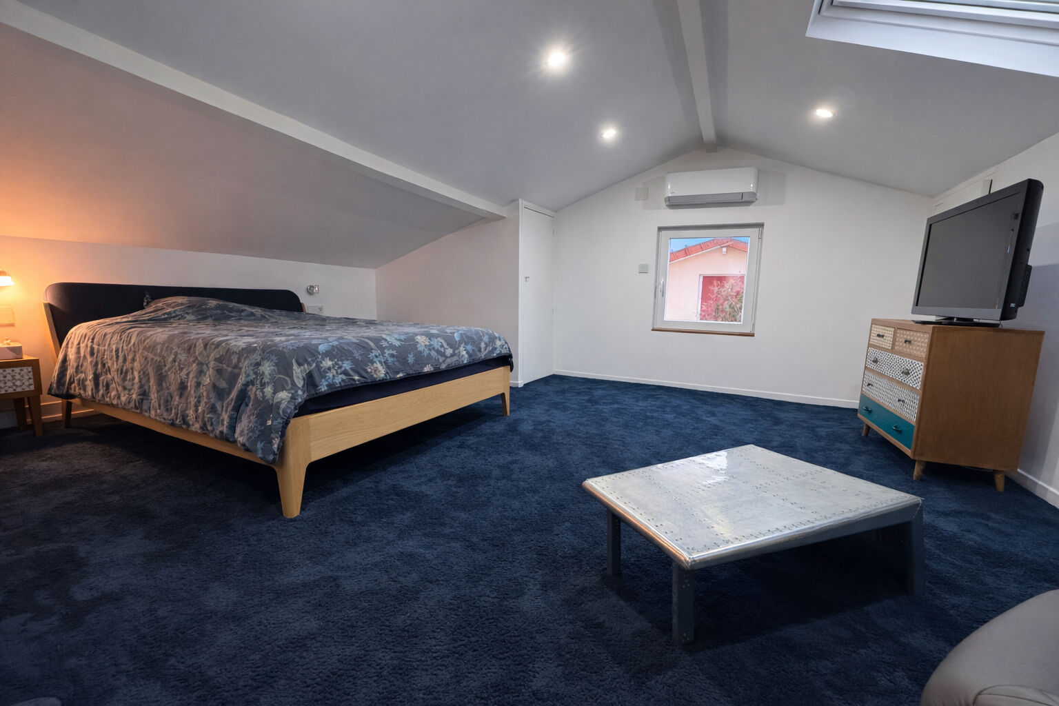 ? D'un étage offrant un espace parental composé d'une chambre mansardée confortable, d'une salle d'eau, d'un WC séparé et d'un dressing.