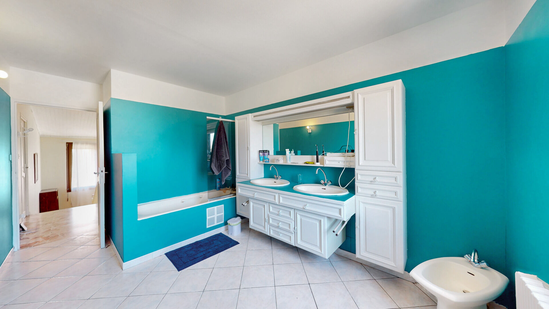 A l'étage, 4 chambres lumineuses (25.78m², 20.34m², 20.99m², 20.67m²), un WC et une grande salle de bains.