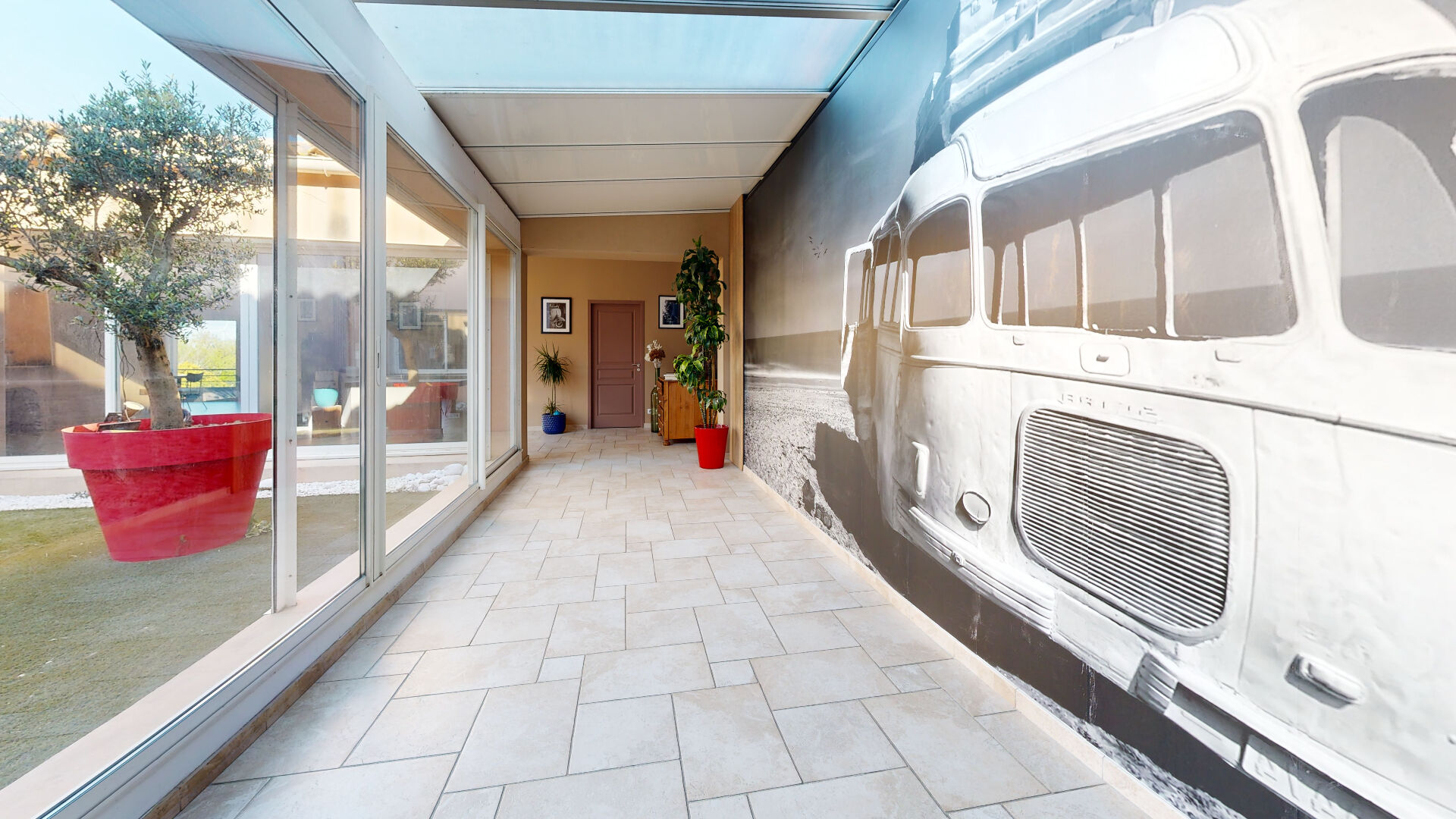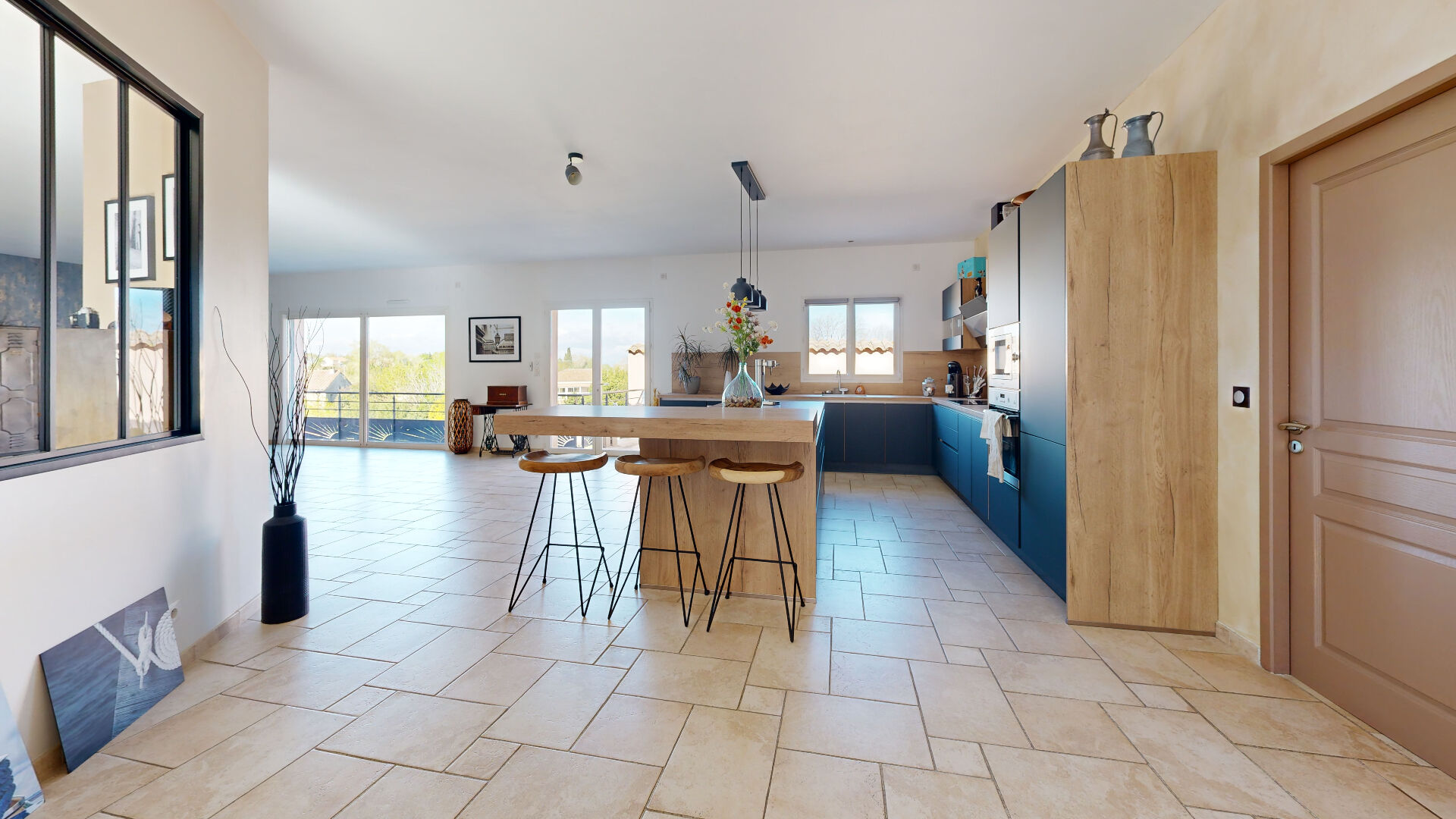 Dès l'entrée, le charme opère avec une pièce de vie spectaculaire, baignée de lumière, à l'esprit contemporain. Véritable coeur de la maison, elle s'ouvre sur une terrasse conviviale ainsi qu'une loggia intérieure, créant un espace de vie unique, lumineux et chaleureux en toute saison.