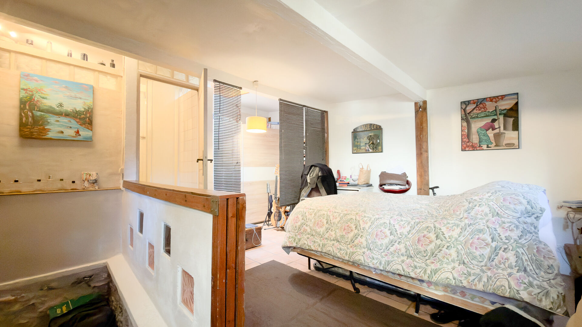 Au sous sol une pièce à usage de studio de musique.