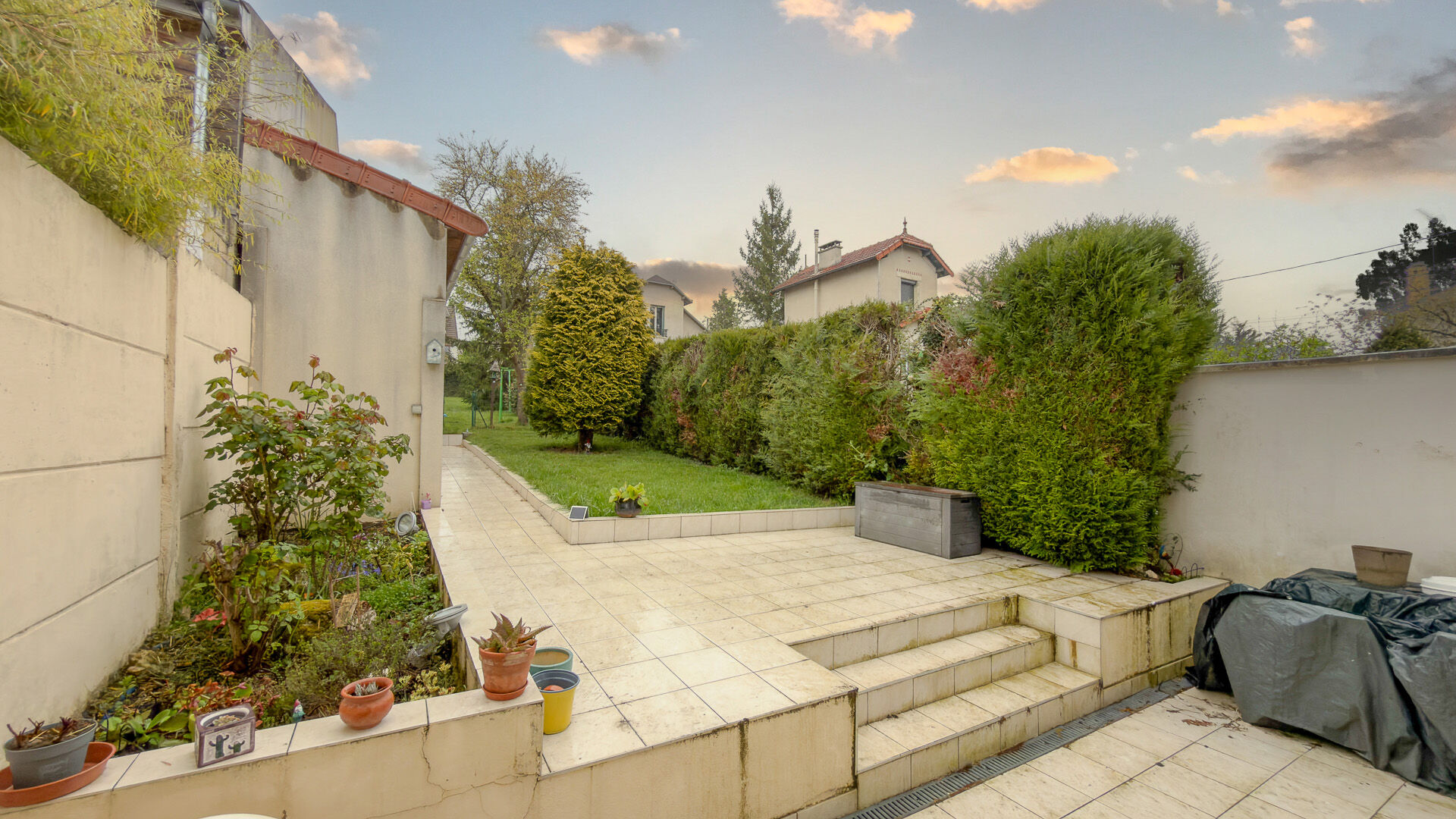 Crosne, sur le coteau exposé Sud, maison des années 30, d'environ 87 m² habitable et comprenant: Entrée, Cuisine aménagée et équipée ouverte sur le séjour avec accès terrasse et jardin, wc.