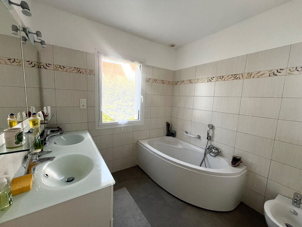 Elle se compose d'une entrée, cuisine semi ouverte, salon séjour exposé SUD-OUEST donnant sur une terrasse, WC, lingerie, 4 chambres dont une spacieuse suite parentale avec baignoire, douche italienne et WC, et une seconde avec salle de douches.