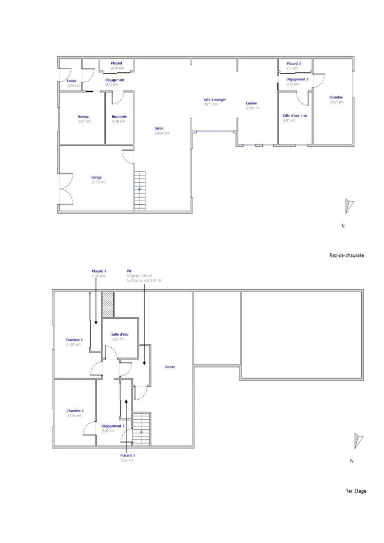 À l'étage : Palier desservant 2 belles chambres, une salle d'eau, W.C séparés et accès au grenier isolé offrant des possibilités d'aménagement ou de rangement supplémentaire.