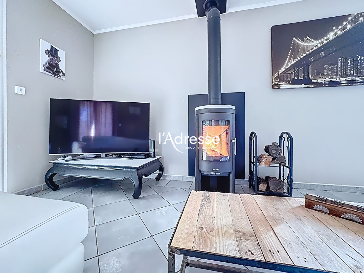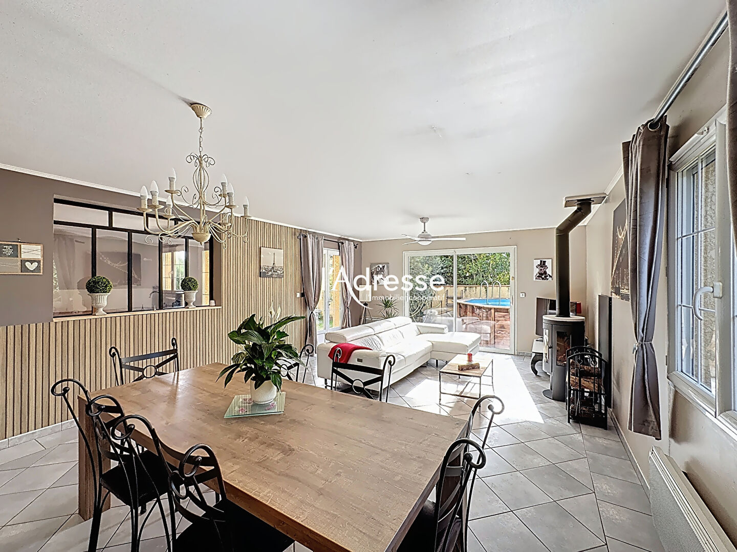 - Un vaste salon-séjour lumineux, agrémenté d'un poêle à bois avec accès direct à une terrasse couverte sans vis-à-vis, idéale pour vos moments de détente.