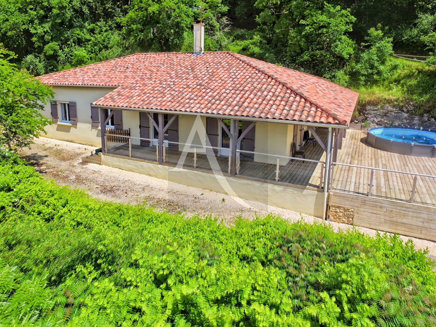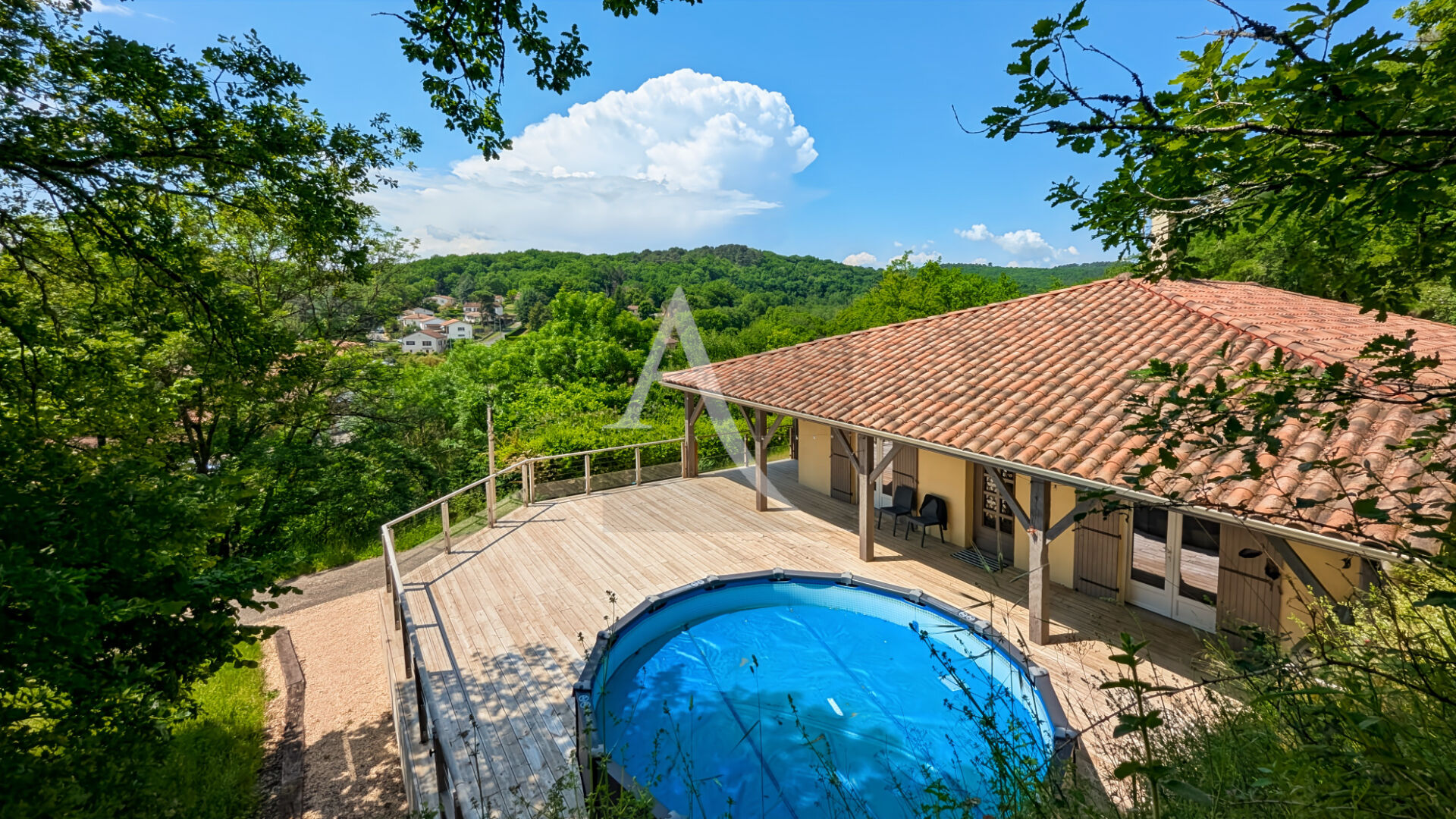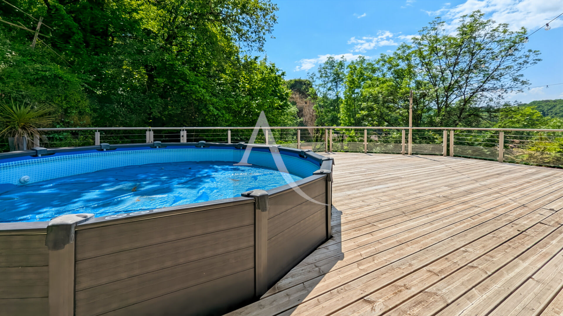 Pour votre bien-être tout au long de l'année, la maison est équipée de la climatisation réversible et de fenêtres à double vitrage. Sur la terrasse, une piscine hors sol semi-enterrée vous invite à la détente, face à un décor naturel enchanteur.
