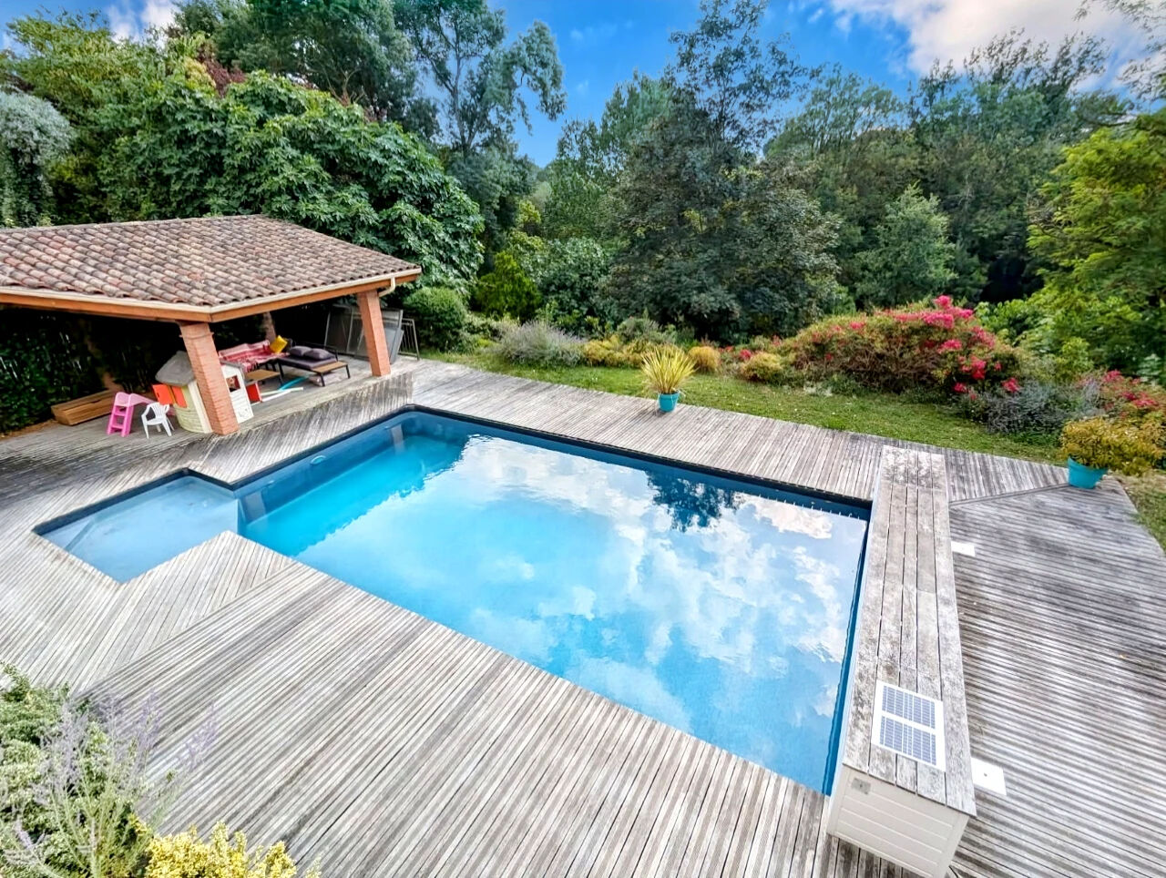 Le tout sur un terrain arboré de 1599 m², avec puits, arrosage automatique et piscine 8x4 sans vis à vis.